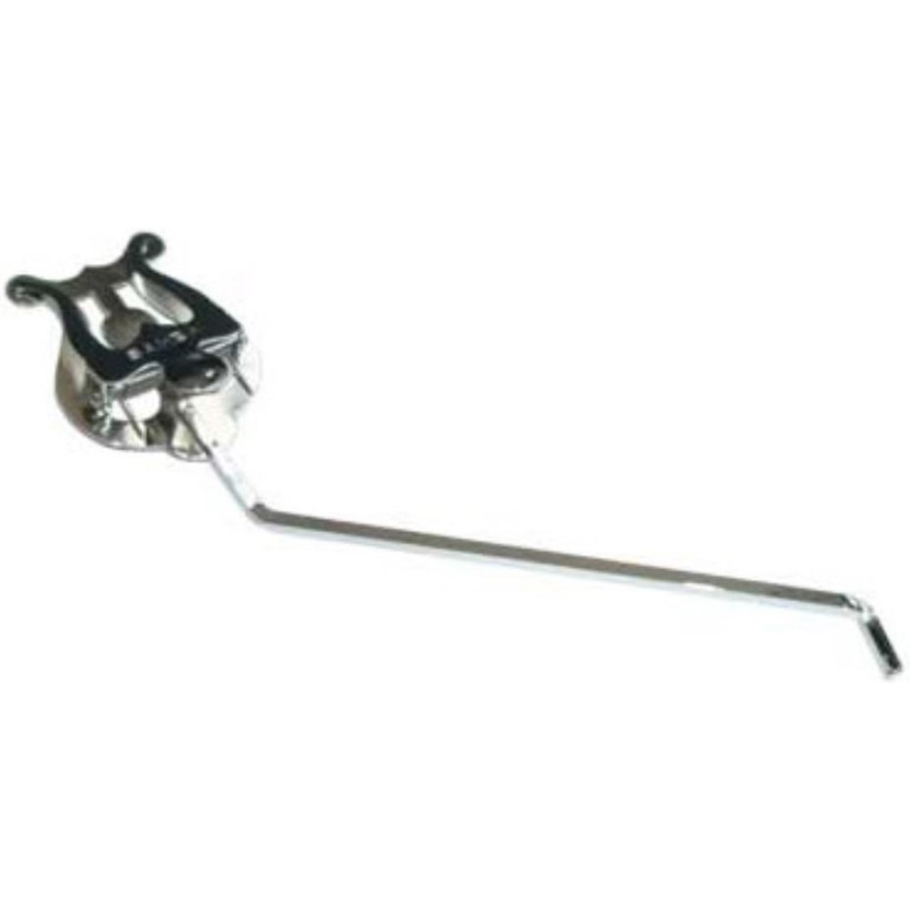 Atril de marcha para bombardino. Atril curvado con inclinación hacia la izquierda. Atril reforzado con pie de latón para conferirle mayor fortaleza. Muelle de acero. Tamaño SUPER, las medidas de la lira son 70 x 55 mm. No incorpora ningún soporte por lo que el atril debe colocarse en el portatril que incorpore el propio instrumento. Acabado cromado. Peso aproximado 63g. Fabricado en España.