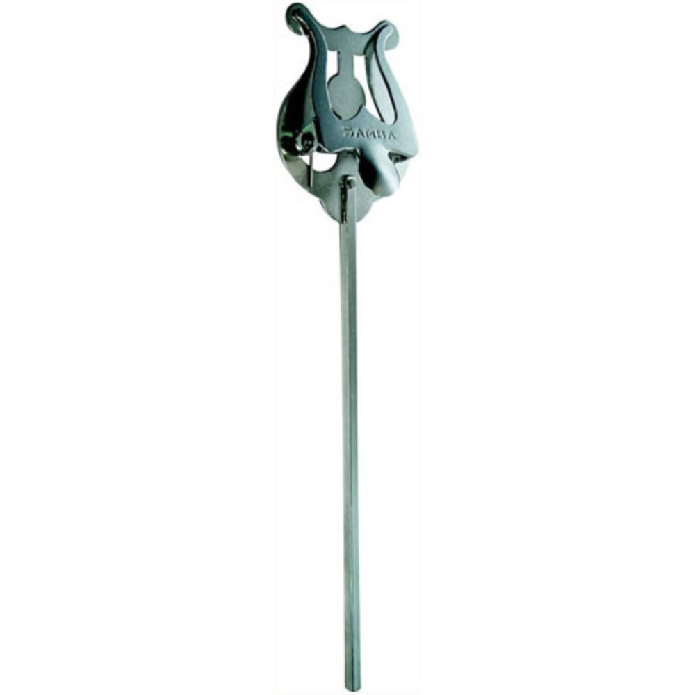 Atril de marcha universal. Utilizado mayoritariamente para bombardino, tuba y trompeta. Este atril debe de doblarse manualmente para adaptarse a cada instrumento. La longitud del pie susceptible de ser doblado es 200 mm, éste está fabricado en latón para conferirle mayor fortaleza al atril. Muelle de acero. Tamaño SUPER, las medidas de la lira son 70 x 55 mm. Acabado cromado. Peso aproximado 69g. Fabricado en España.