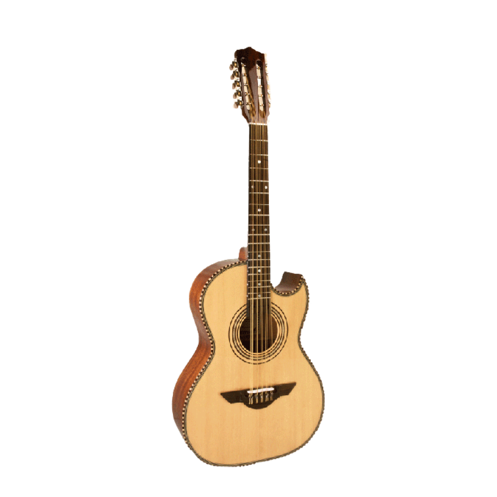 Este bajo quinto acústico de H. Jimenez ha sido elaborado con abeto de alta calidad a excepción de el fondo y laterales que han sido elaborados con caoba. El diapasón es de palisandro de 18 trastes con el tradicional logo láser de H. Jiménez y el puente especial “Thunderwing”™. De fácil ejecución, este bajo quinto produce un sonido muy potente.