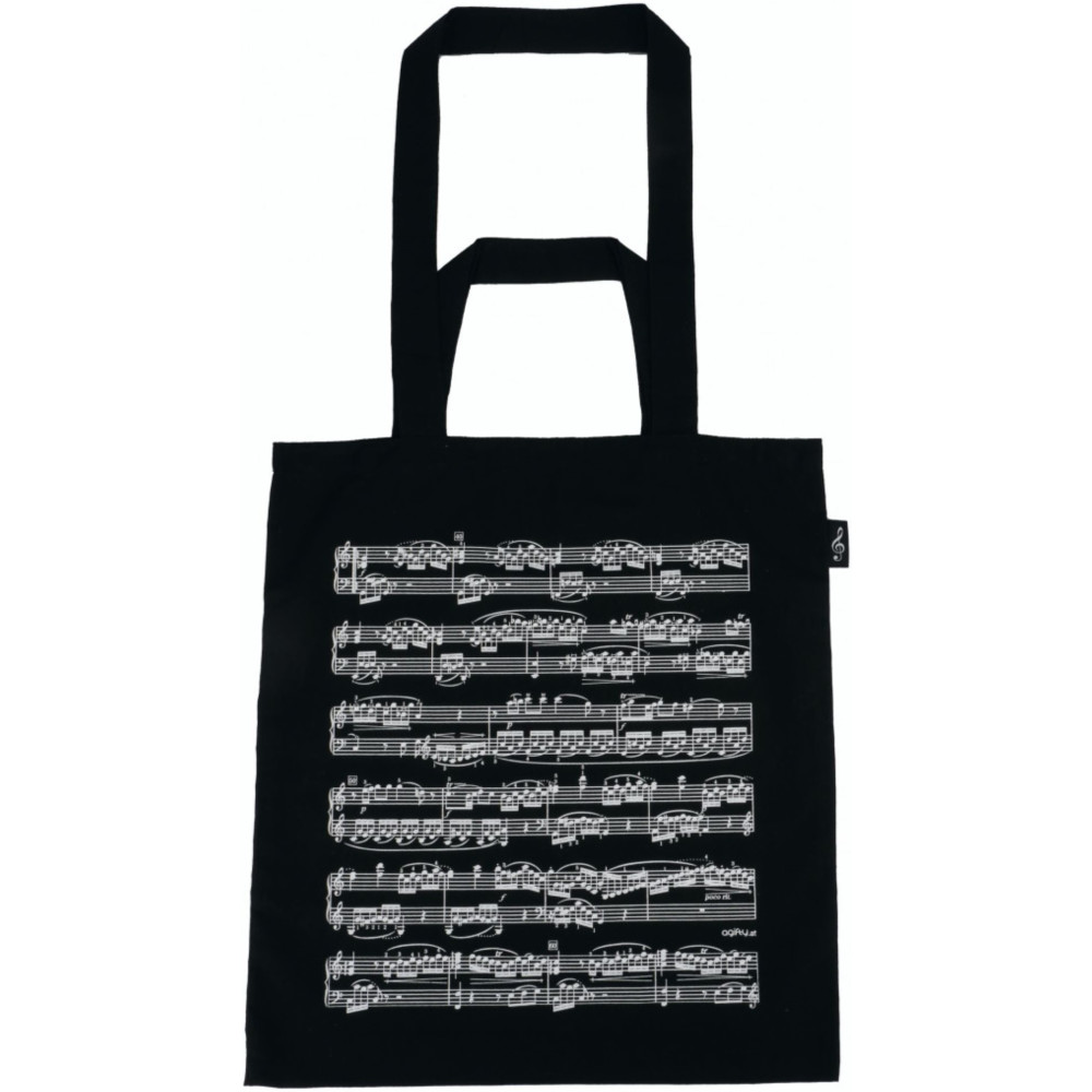 Bolsa asa negra tipo Tote Bag Adorno partituras en blanco Impresión en ambas caras 40×37 cms