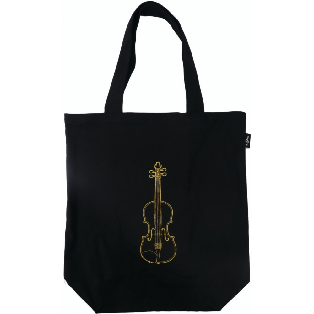 Bolsa city shopper negra Adorno violín dorado bordado Impresión en ambas caras 42x40x13,5 cms