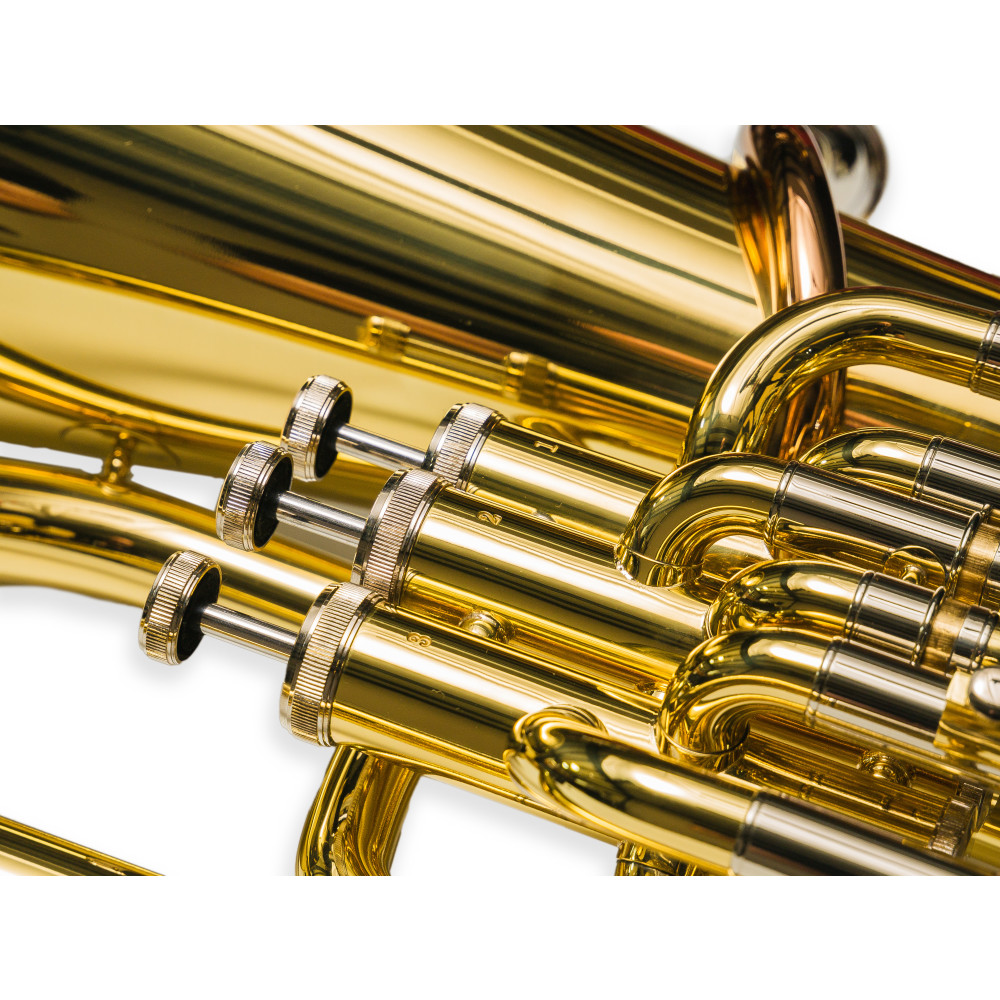 Gracias a su construcción ligera, es más fácil de sostener y manejar, lo que lo convierte en una elección ideal para estudiantes que requieren comodidad sin renunciar a la calidad sonora. Su sonido completo y rico, junto con un rango dinámico expresivo, hacen de este bombardino una excelente opción tanto para tocar en conjuntos de metales como para piezas solistas. Su diseño ergonómico y su estructura bien equilibrada permiten largas sesiones de práctica sin fatiga.