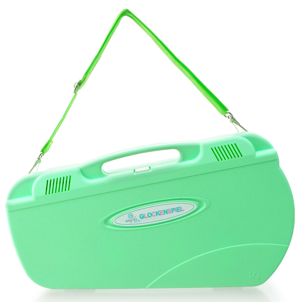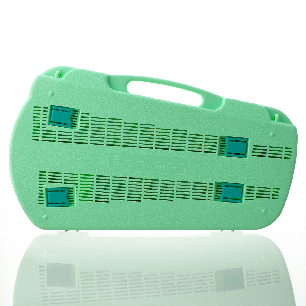 Carrillón cromático de 27 teclas de colores diferentes, con maletín verde agua plástico.
