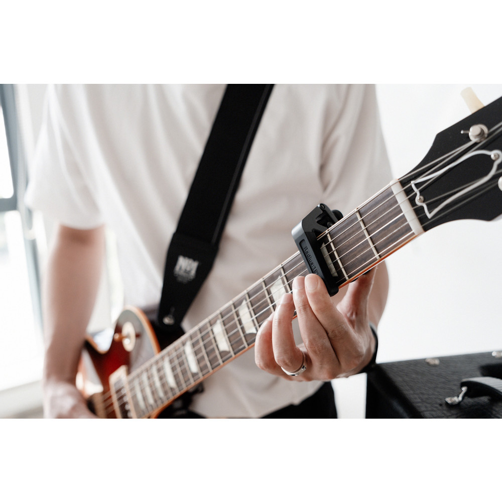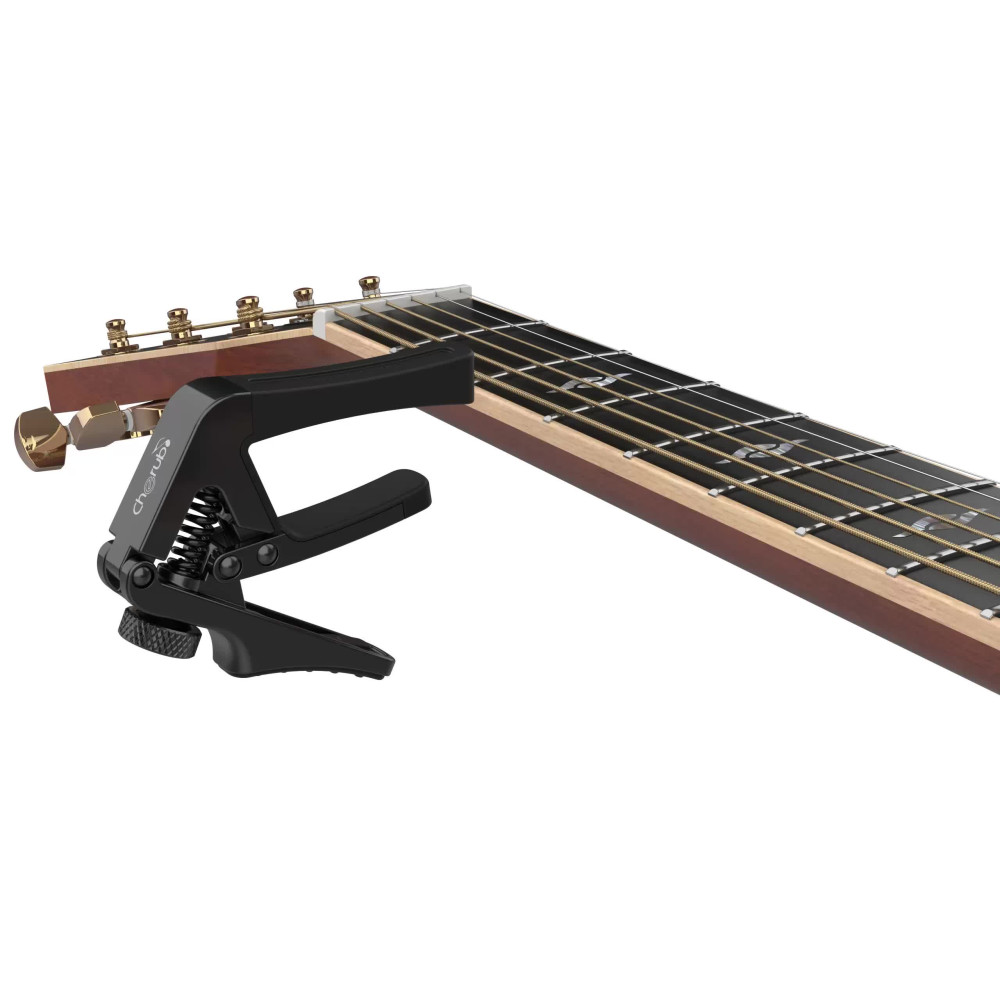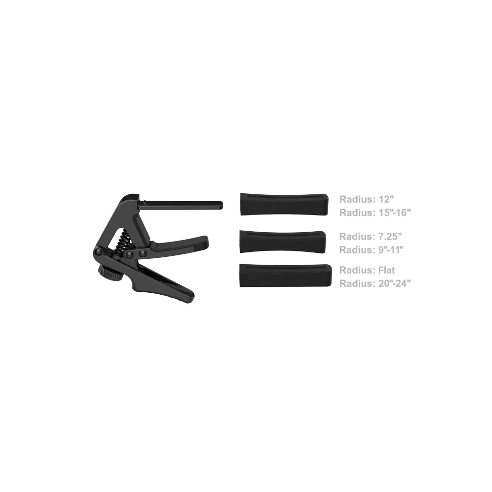 La Cherub CGC-1 es una cejilla profesional diseñada para adaptarse con precisión a cualquier tipo de guitarra. Su sistema de ajuste incluye tres kits de goma blanda intercambiables que permiten hasta 6 radios distintos, para un ajuste perfecto al radio del diapasón, ya sea en guitarras acústicas, eléctricas o clásicas. Gracias a su mando de control de tensión, se evita que la afinación se vea afectada, asegurando siempre una sujeción firme y estable.