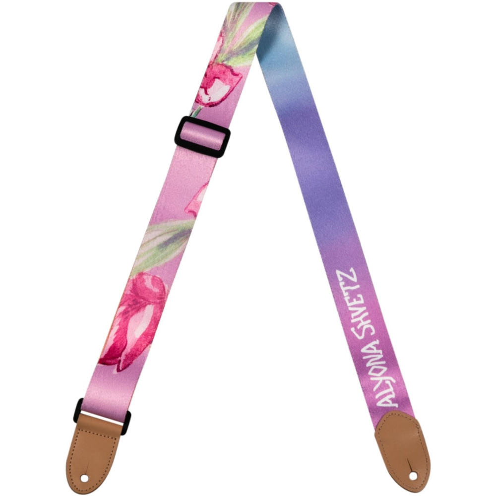La correa de ukelele Alyona Shvetz Signature cuenta con colores rosas que complementan el ukelele de viaje Alyona Shvetz Signature, pero también se ve muy bien en cualquier ukelele.