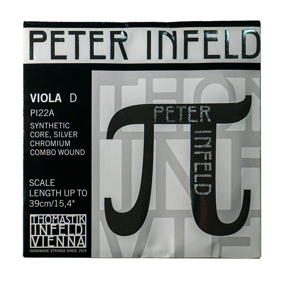 Con una longitud de 39cm, esta Cuerda 2ª (D) para viola 4/4 Thomastik PI22AA Peter Infeld cuenta con una tensión media, núcleo sintético, entorchado de cromo y terminación en bola.