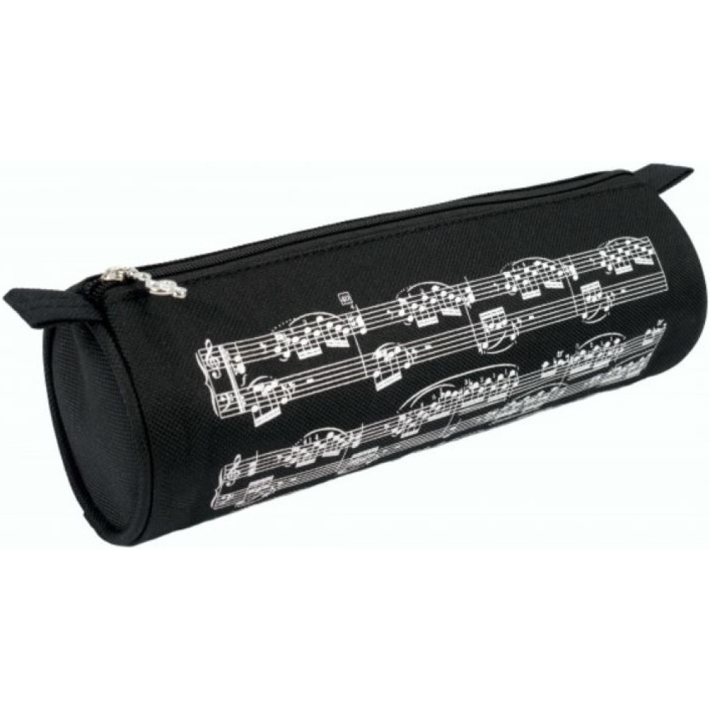 Estuche Escolar Redondo Agifty P-1030 Negro Partituras Blanca
