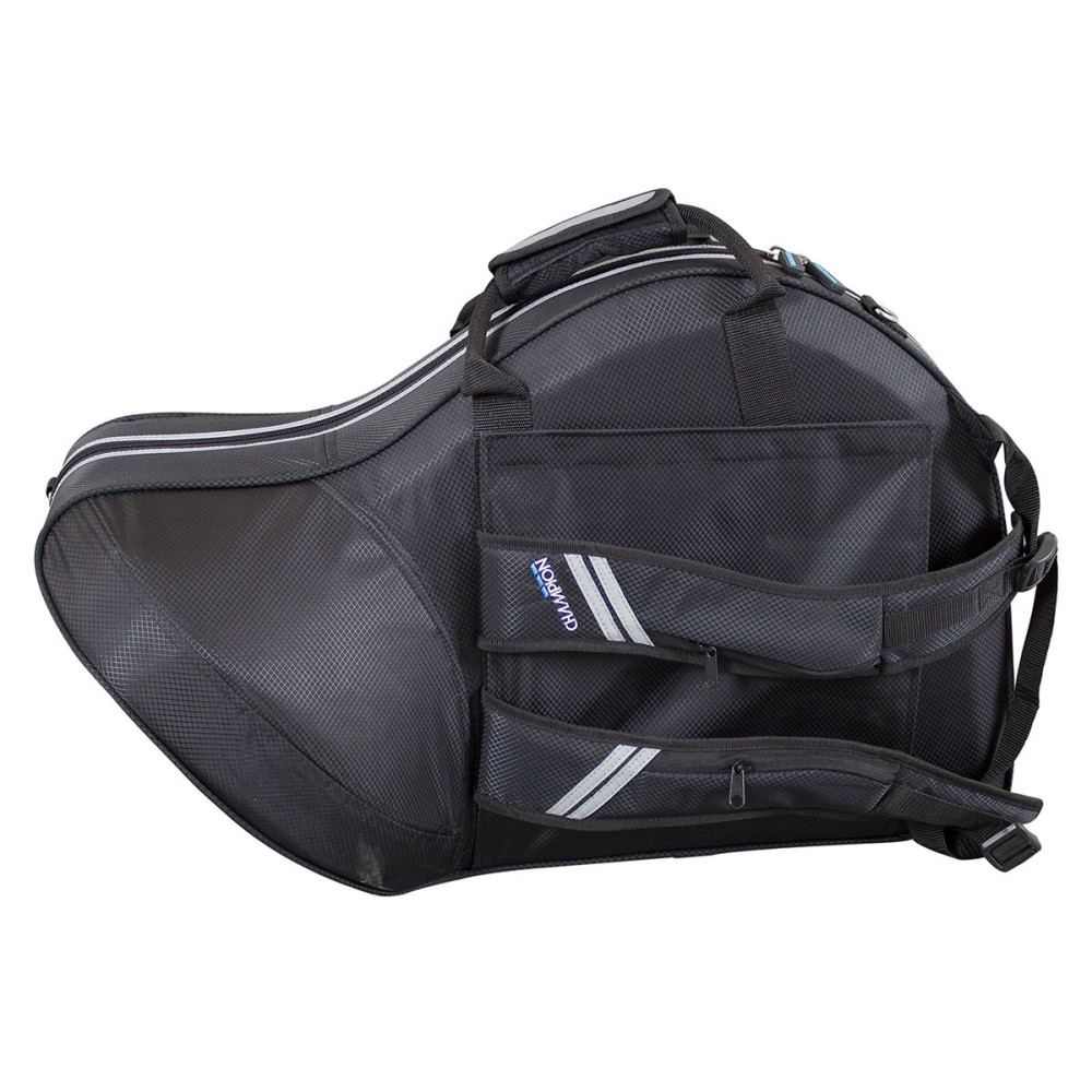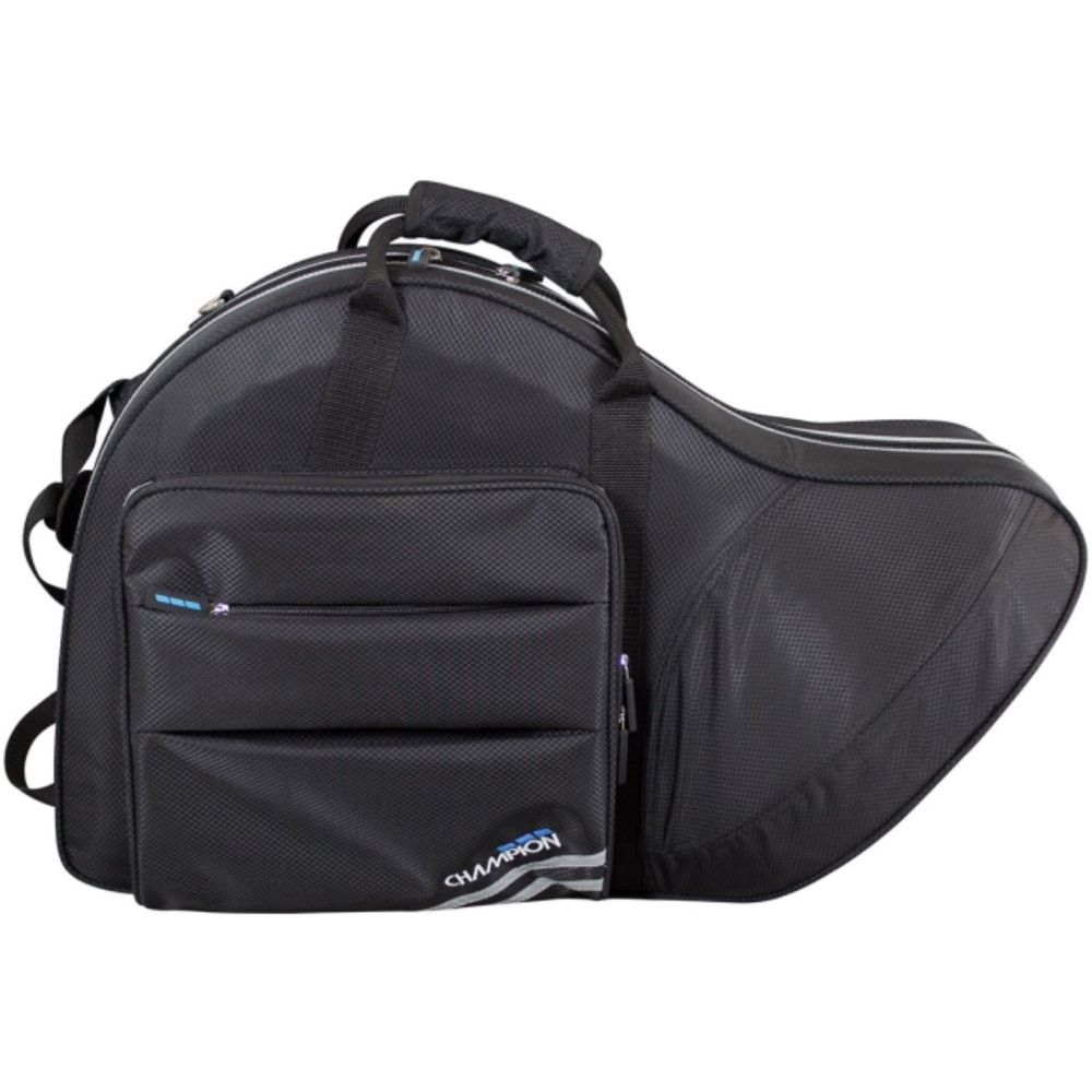 El estuche Champion para trompa francesa, modelo CHCFHOR1, está diseñado para brindar una protección superior al instrumento. Su construcción ligera pero robusta, junto con una cubierta exterior de cordura resistente al agua, asegura la durabilidad y seguridad de la trompa en diversas condiciones. El interior de felpa moldeada ofrece un ajuste preciso, protegiendo el instrumento de golpes y arañazos. Además, cuenta con correas traseras acolchadas y ocultables, así como una correa de hombro desmontable, proporcionando múltiples opciones de transporte para la comodidad del músico. Los detalles reflectantes en los bolsillos frontales y las cremalleras aumentan la visibilidad en entornos oscuros, mejorando la seguridad. Los amplios bolsillos exteriores permiten almacenar accesorios adicionales de manera organizada, facilitando el acceso a ellos cuando sea necesario.