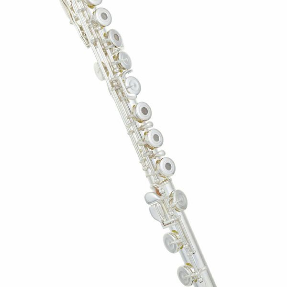 La flauta Pearl 505-RE tiene el cuerpo y la cabeza Forza plateada. Además tiene el mecanismo de Mi y los platos abiertos y desalineados.