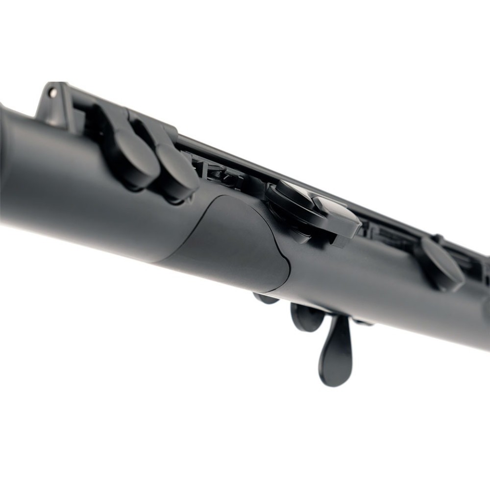 El NuvoBand Flute en color negro es una flauta travesera diseñada para estudiantes y músicos que buscan un instrumento ligero, duradero y de fácil mantenimiento. Fabricada en polímero de alta calidad, pesa aproximadamente la mitad que una flauta tradicional, lo que reduce la fatiga durante largas sesiones de práctica. Su diseño impermeable permite una limpieza sencilla y la posibilidad de tocar en diversas condiciones climáticas sin preocupaciones. La disposición ergonómica de las llaves, con una llave de Sol desplazada y extensiones táctiles en las llaves de Sol y La, favorece una técnica adecuada y comodidad para flautistas de todas las edades. Las zapatillas de silicona duraderas y las llaves de polímero garantizan un sellado fiable y resistencia al desgaste, mientras que las varillas de acero inoxidable proporcionan una acción consistente a lo largo del tiempo. Estas características hacen de esta flauta una opción confiable tanto para la práctica como para la interpretación.