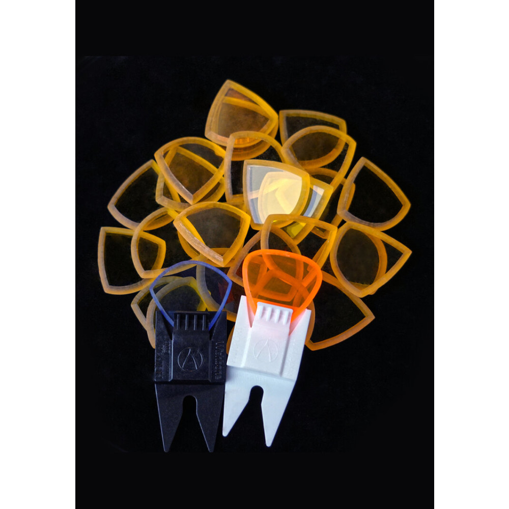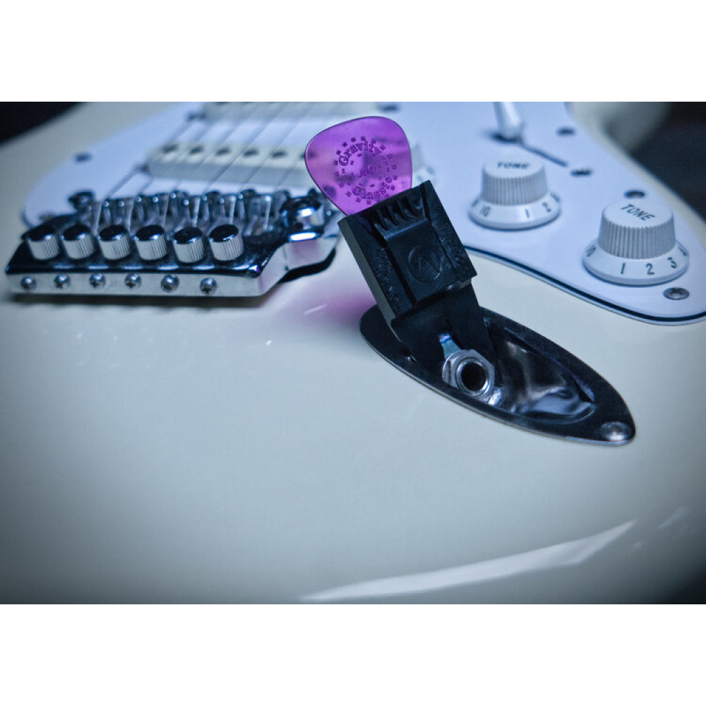 Pickport, es la solución para todos los músicos que necesitan un acceso rápido y fácil a sus púas. El Pickport se monta bajo afinadores, botones de volumen y tono, botones de correa, así como tomas de pastillas de guitarra acústica y en tomas de entrada Stratocaster. El Pickport es duradero y resistente. Admite púas de 0.46mm a 2.5 mm.