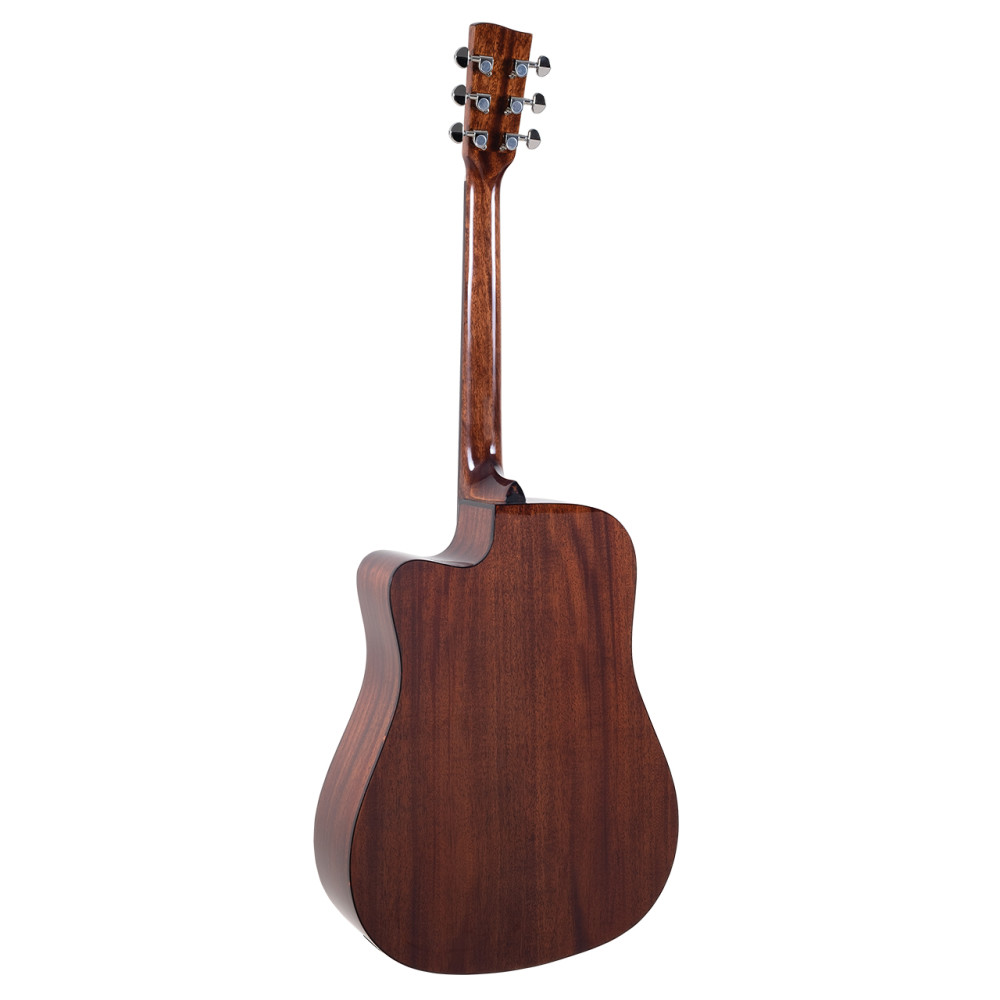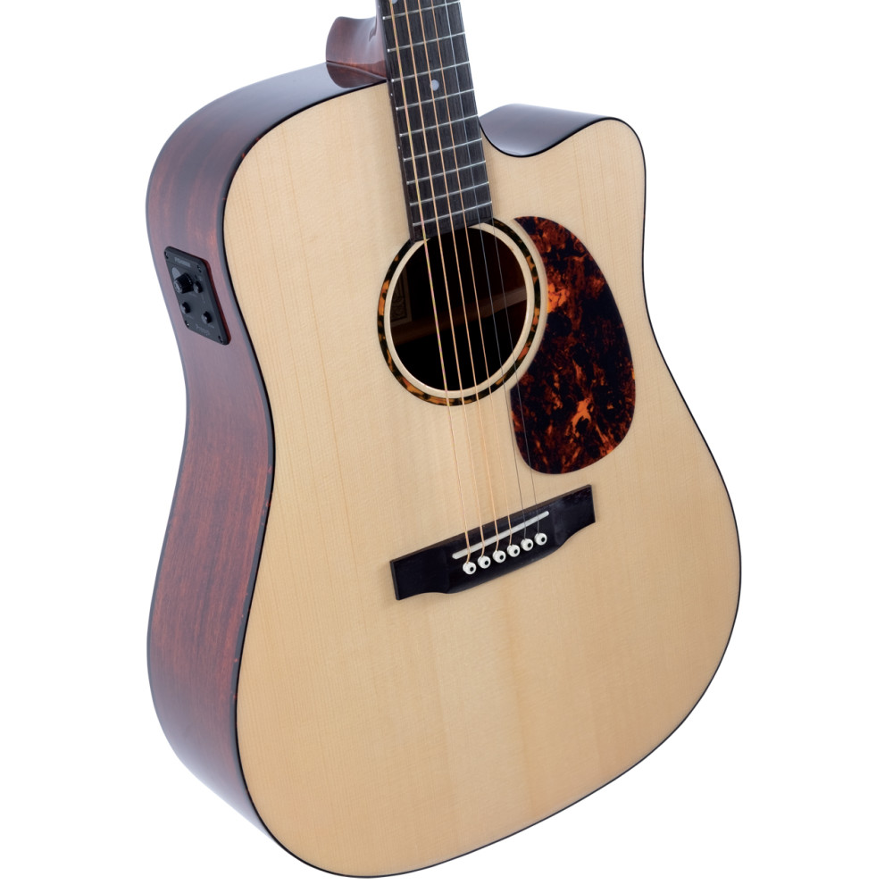 La forma del cuerpo Dreadnought sigue siendo el estándar de la industria, con graves profundos y medios potentes para destacar en un conjunto. La tapa de abeto macizo y el refuerzo en X completamente festoneado capturan la huella sonora de esa definición de diccionario de «GUITARRA». Remata con un cutaway de fácil acceso y la reconocida electrónica Presys de Fishman, y esta es tu nueva guitarra de escenario favorita.