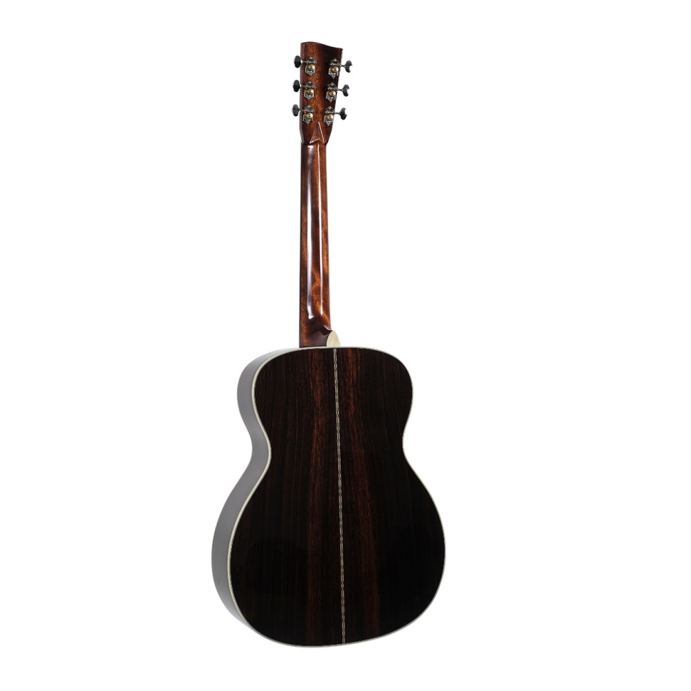 Forma 000.Tapa de Abeto (pícea) maciza de Adirondack seleccionada.Fondo y aros de palorosa macizo seleccionado.