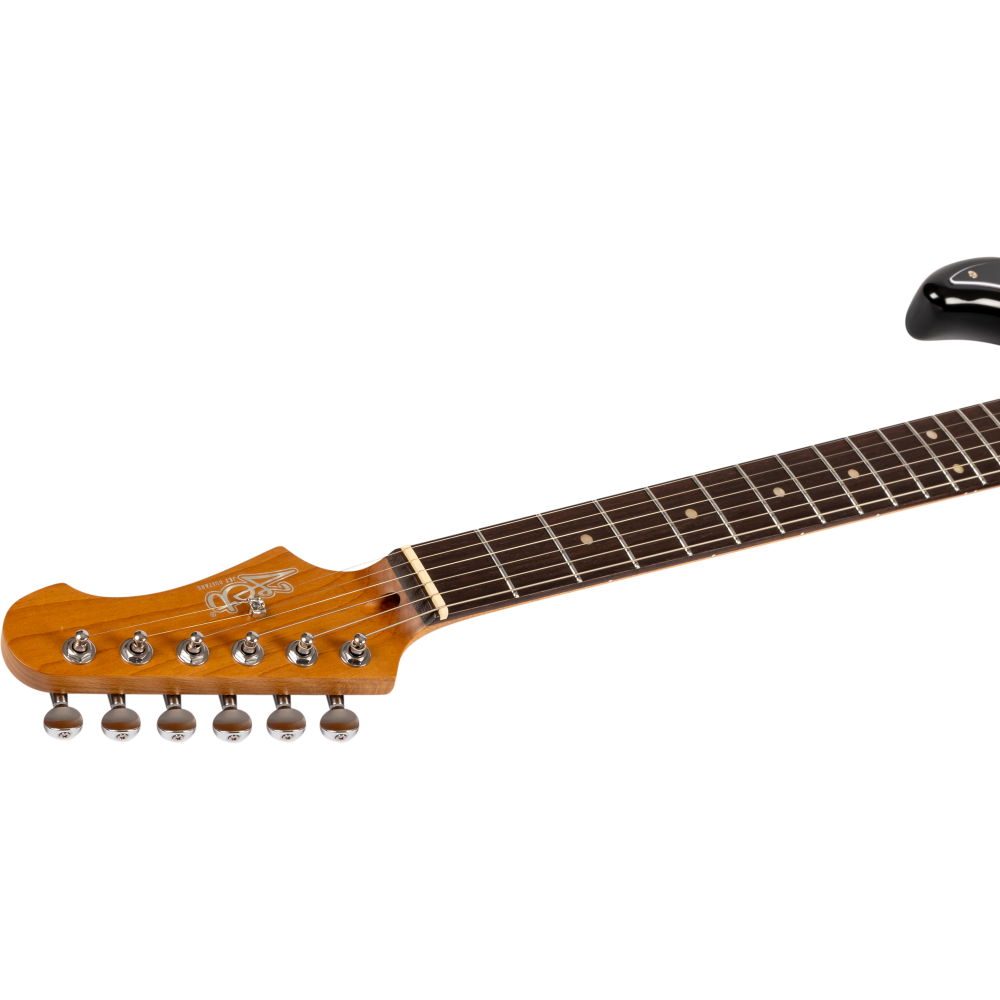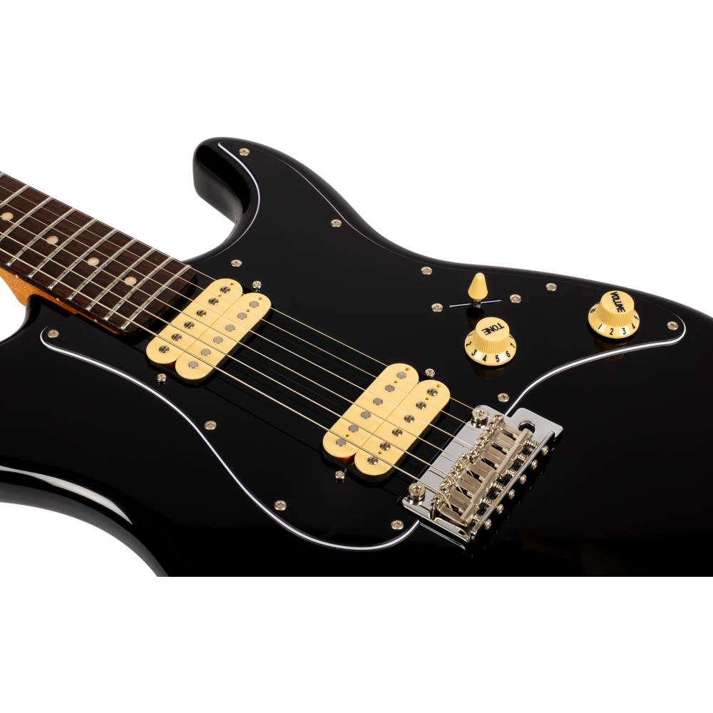La Jet JS400-BKR HH Black fusiona diseño moderno con tradición y componentes profesionales. Cuenta con cuerpo de álamo tostado y mástil canadiense roasted maple de perfil Modern C para una ejecución cómoda y estable.