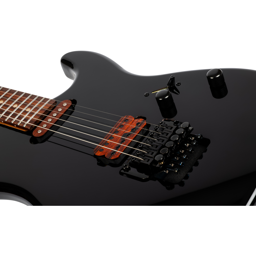 Todo el hardware de la guitarra, incluidos el puente, las clavijas, los controles y demás componentes metálicos, está acabado en color negro, creando una estética elegante, profesional y completamente cohesiva con el acabado del cuerpo.