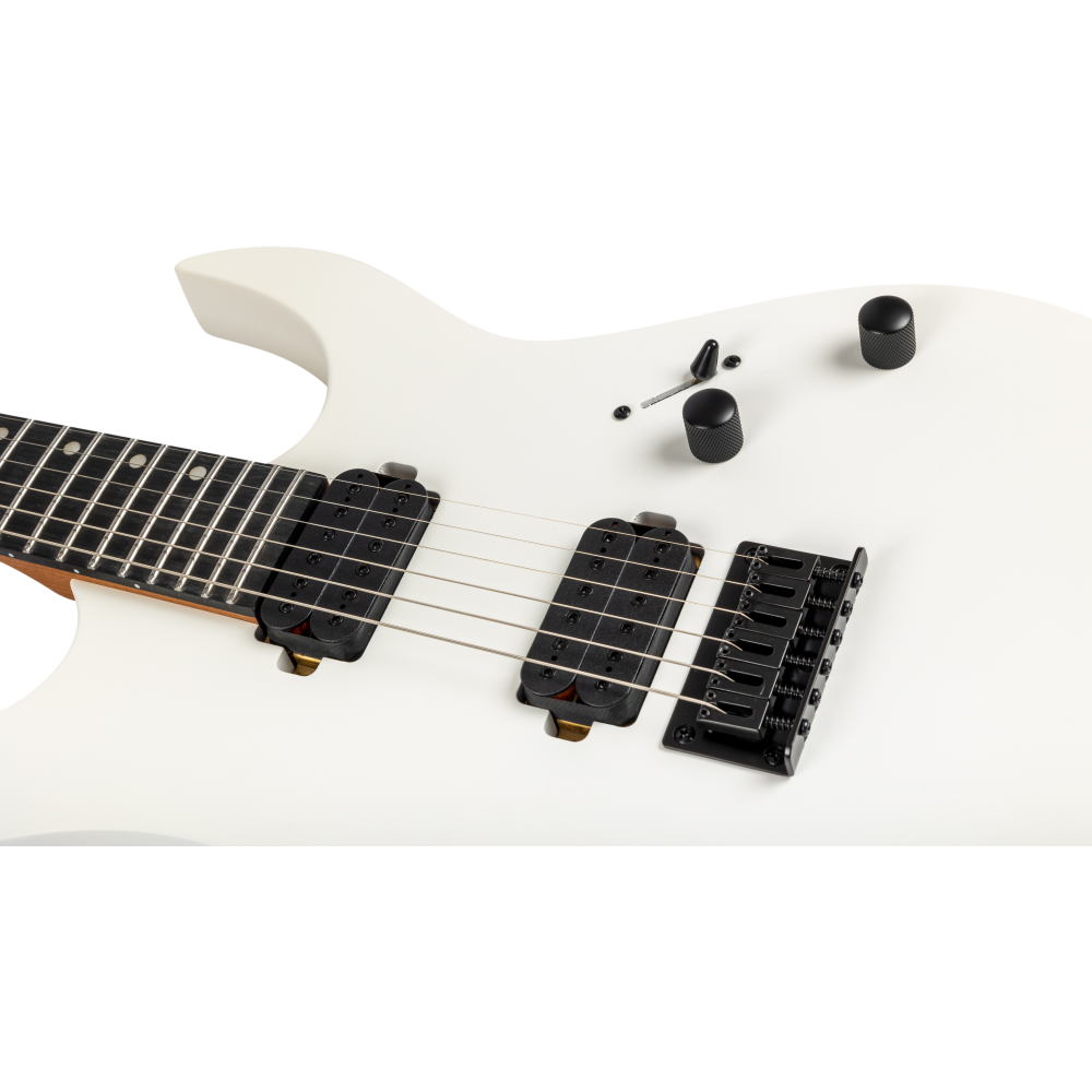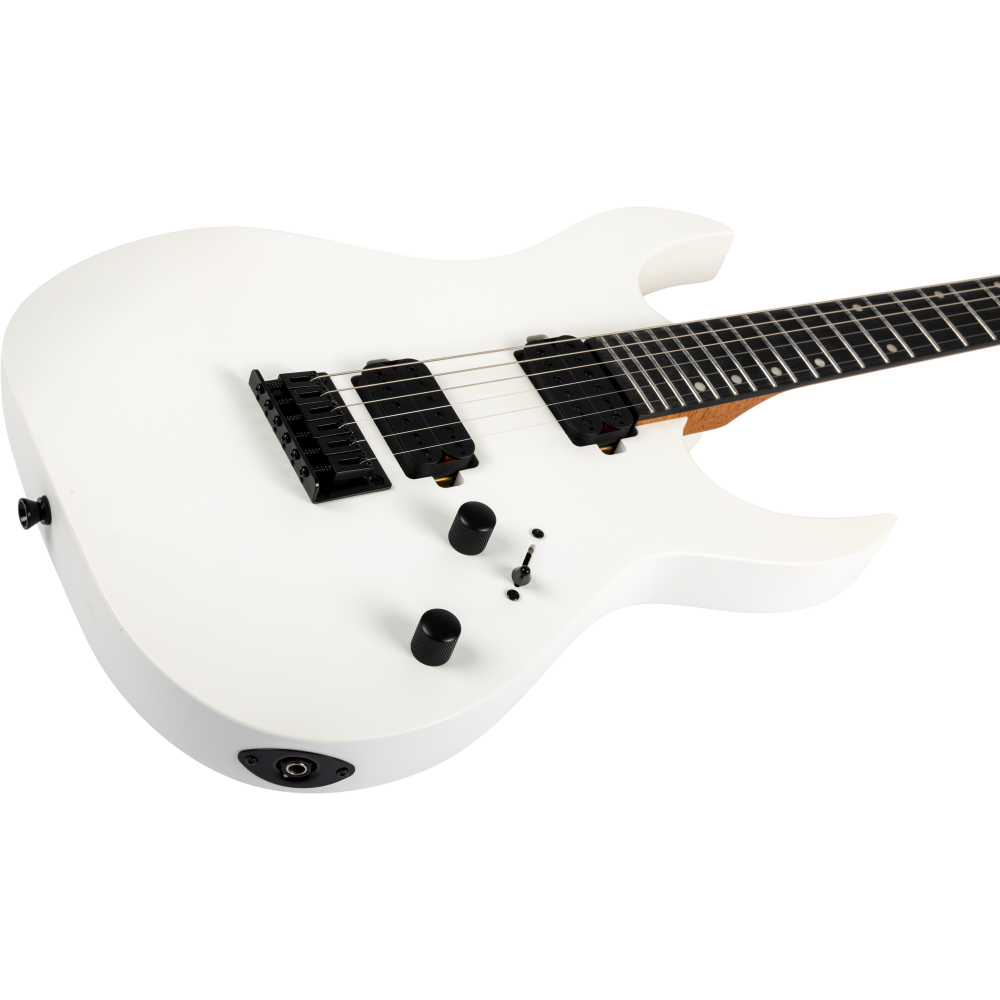 La Spira S400 MWH es una guitarra eléctrica moderna con un elegante acabado negro satinado. Parte de la Serie 400, está diseñada para guitarristas que buscan versatilidad y estilo.