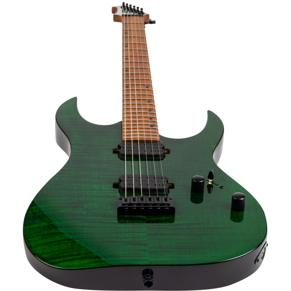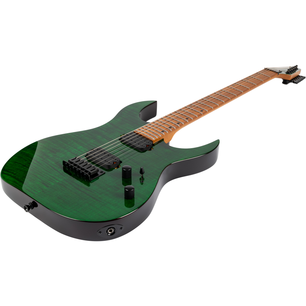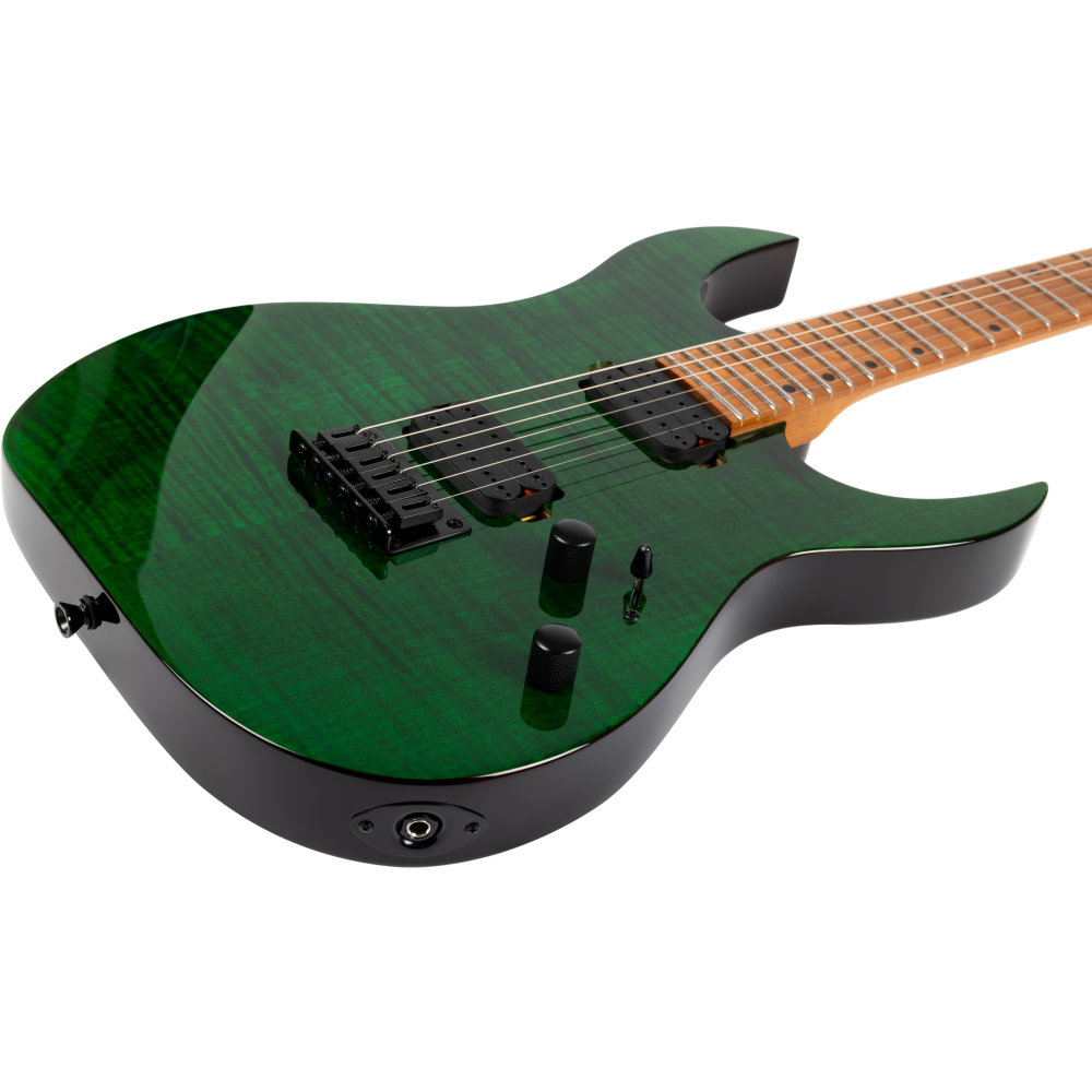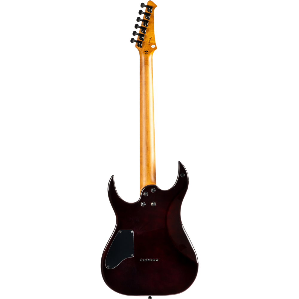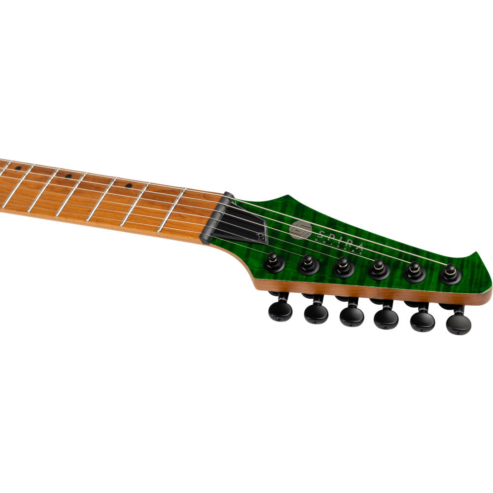 a Spira S450-TGR es una guitarra diseñada para ofrecer una experiencia de interpretación rápida y precisa, ideal para músicos de rock y metal que buscan un sonido potente y definido. Fabricada con un cuerpo de álamo tostado y una tapa de arce flameado, combina un diseño visualmente impactante con una excelente resonancia y durabilidad. El mástil de arce canadiense tostado y el diapasón a juego proporcionan una superficie suave y cómoda para tocar solos intrincados o realizar riffs pesados.