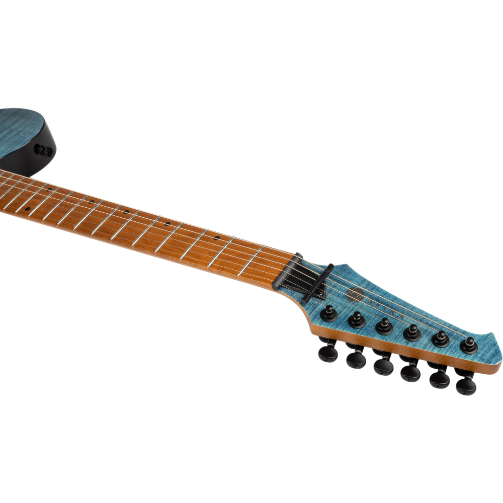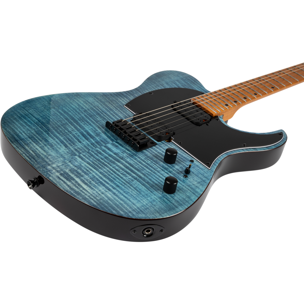 La Spira T-450 TDB es una reinvención moderna del estilo clásico T, que combina un diseño llamativo con una gran potencia sonora. Está acabada en un color Trans Blue y cuenta con materiales de alta calidad como un cuerpo de álamo asado y una tapa de arce flameado, además de un mástil de arce canadiense tostado