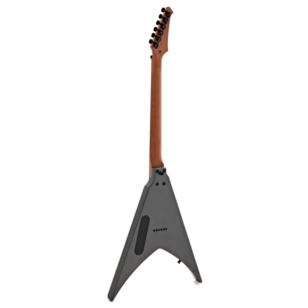 El cuerpo de álamo tostado y el mástil de arce canadiense tostado con acabado satinado aportan solidez y un tacto premium, mientras que el diapasón de Ebony Tech con 24 trastes jumbo asegura rapidez y fluidez. Con humbuckers Spira Villain de alta salida, puente fijo, clavijas de bloqueo y herrajes negros, la V-400 garantiza potencia, estabilidad y fiabilidad tanto en escenario como en estudio.