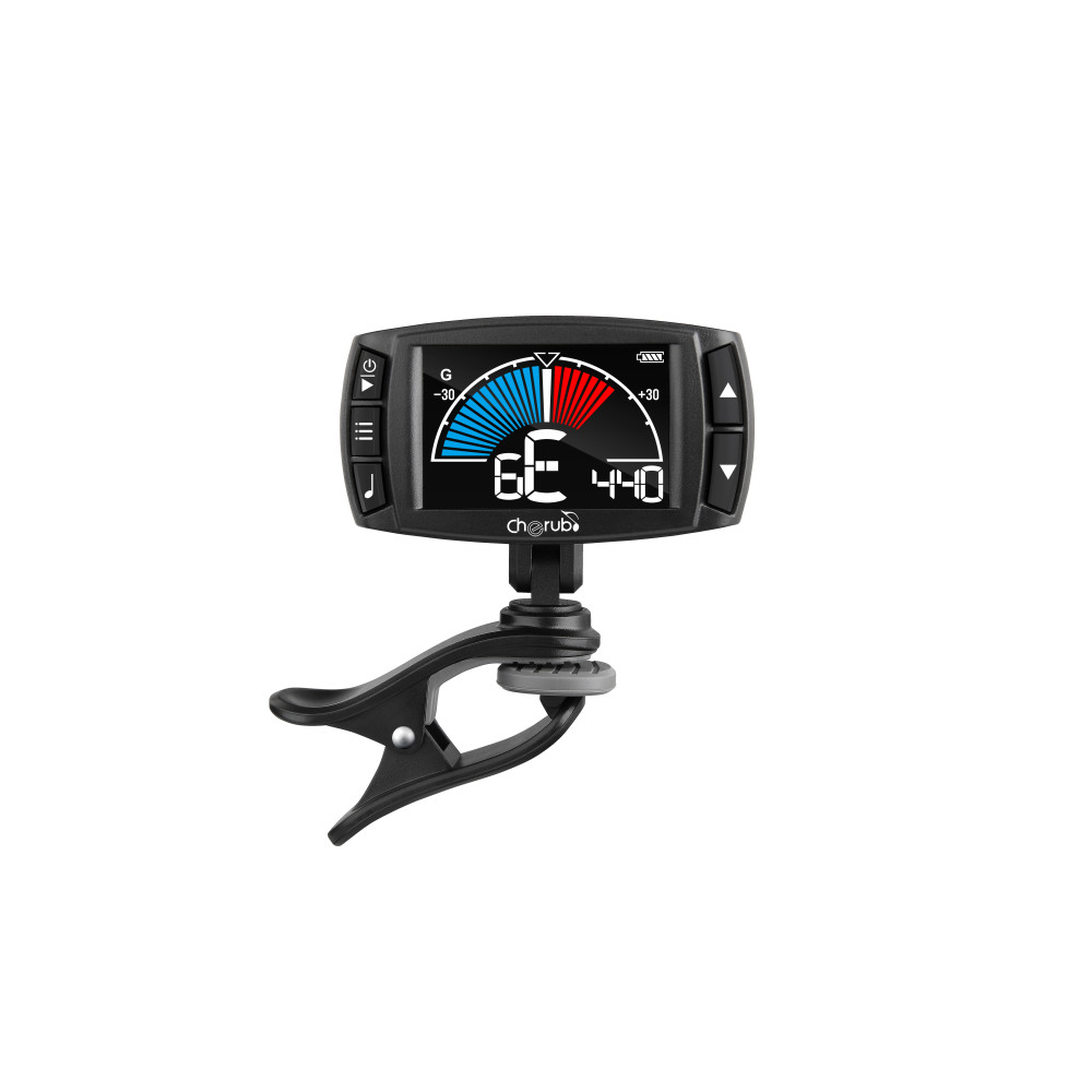 El Cherub WMT-560 es una herramienta 3 en 1 que combina afinador, metrónomo y generador de tonos en un solo dispositivo compacto y recargable. Diseñado para músicos versátiles, ofrece una afinación precisa con un sensor de alta sensibilidad, respuesta ultra rápida y una pantalla LCD brillante que garantiza una visualización clara incluso en condiciones de poca luz.