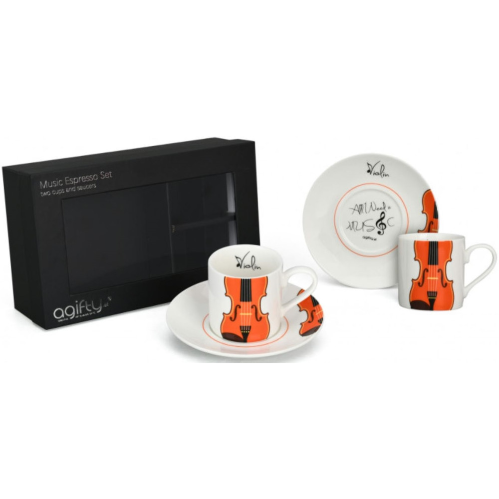 Pack 2 Tazas Espresso Con Plato Agifty M-7023 Violín