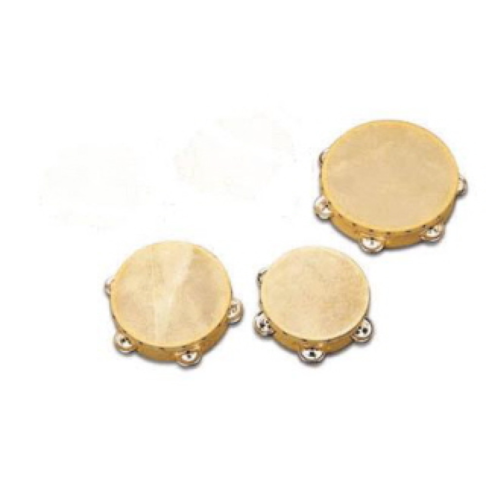 Pandereta tuna de 16cm con parche de piel, aro de plástico y 5 pares de sonajas.