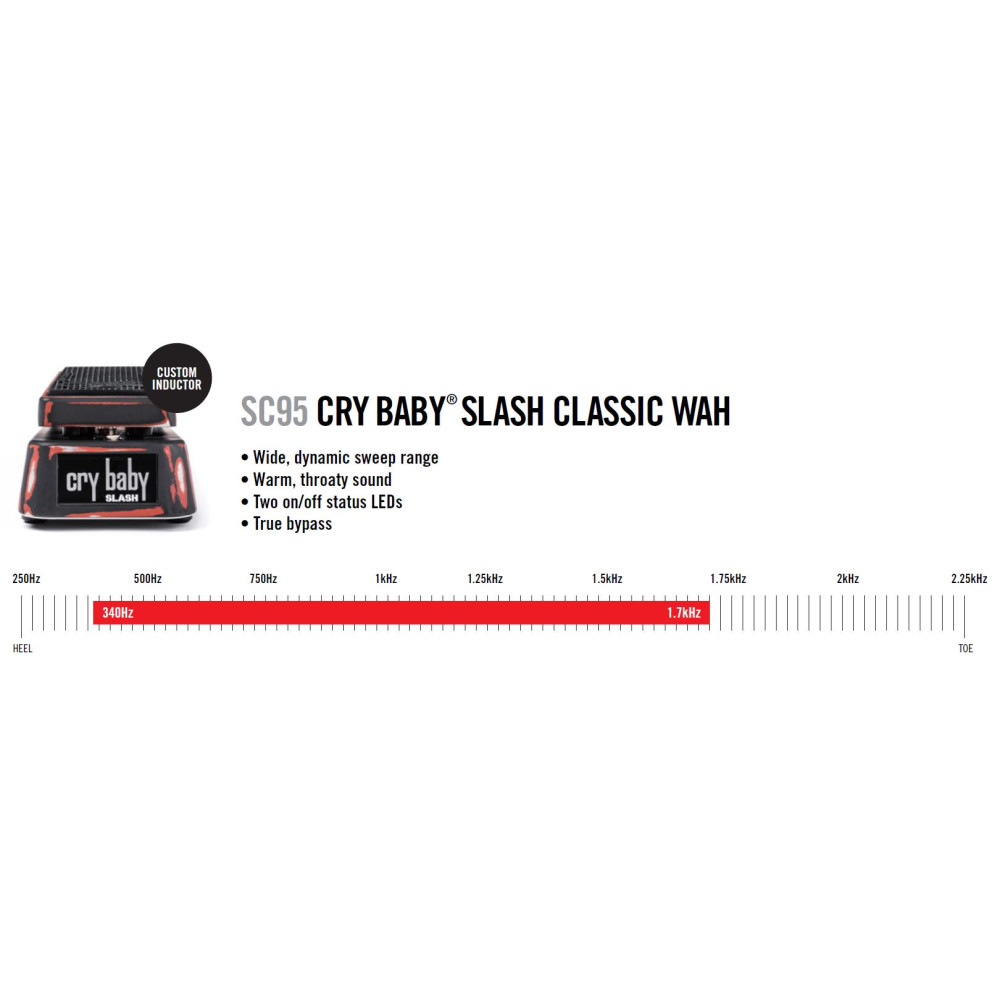 A lo largo de su carrera, Slash ha utilizado el Cry Baby para crear sus característicos solos épicos que entreteje en su innovador rock arenoso e influenciado por el blues. El Slash Cry Baby Classic,  tiene la voz personalizada para el sonido crudo y expresivo que influenció a una generación de guitarristas.