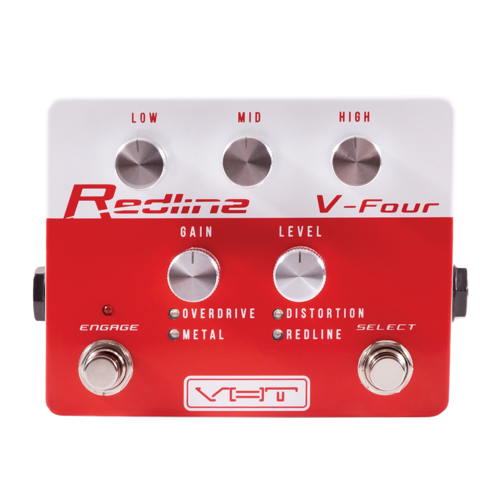 El VHT Redline V-Four es un pedal de overdrive compacto que encapsula el canal de distorsión de los amplificadores Redline más vendidos de VHT. Ofrece cuatro modos seleccionables: Overdrive, Distortion, Metal y Redline, este último con una ganancia extremadamente alta, ideal para estilos como el djent. Cada modo responde de manera excepcional a la dinámica de la púa y a los cambios en el control de volumen, proporcionando una amplia gama de tonos y texturas. El pedal cuenta con controles de ecualización de tres bandas (Low, Mid y High), además de ajustes de Gain y Level, permitiendo una personalización detallada del sonido. Incluye un footswitch de true bypass para activar o desactivar el efecto, y otro para seleccionar entre los cuatro modos. Funciona con una batería interna de 9 voltios o con una fuente de alimentación externa de 9 voltios (no incluida).