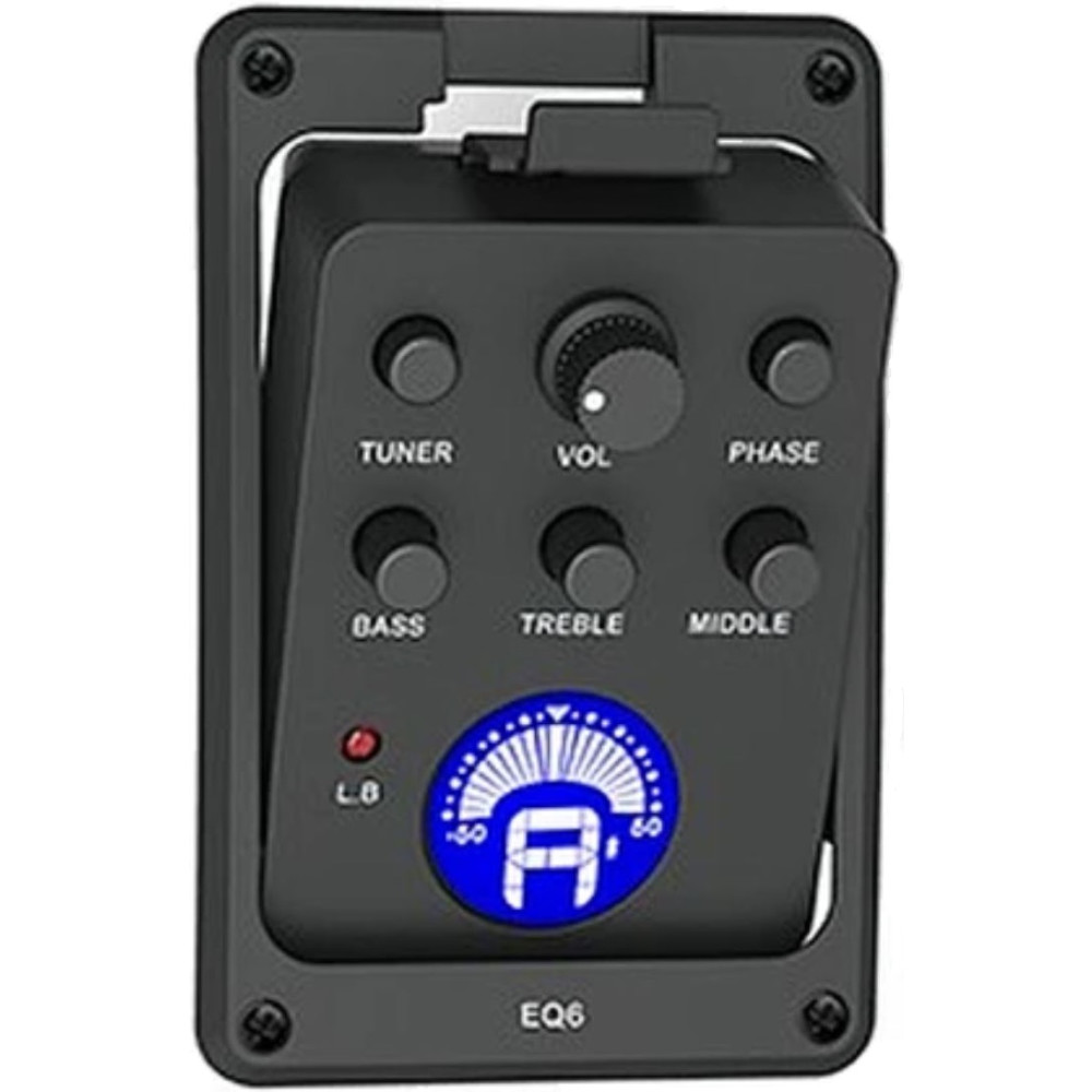 El preamplificador integrado EQ6 está diseñado y construido para ofrecer el máximo control, rendimiento y calidad en un formato pequeño y discreto. El compacto y sofisticado EQ6 cuenta con controles de volumen, graves, medios y agudos, un interruptor de fase y un afinador incorporado con pantalla LCD. El preamplificador EQ6 también incluye un captador suave de alta calidad para instalación plug and play sin soldadura, un indicador de batería baja y un diseño de pestaña único para un fácil acceso al compartimiento de la batería.