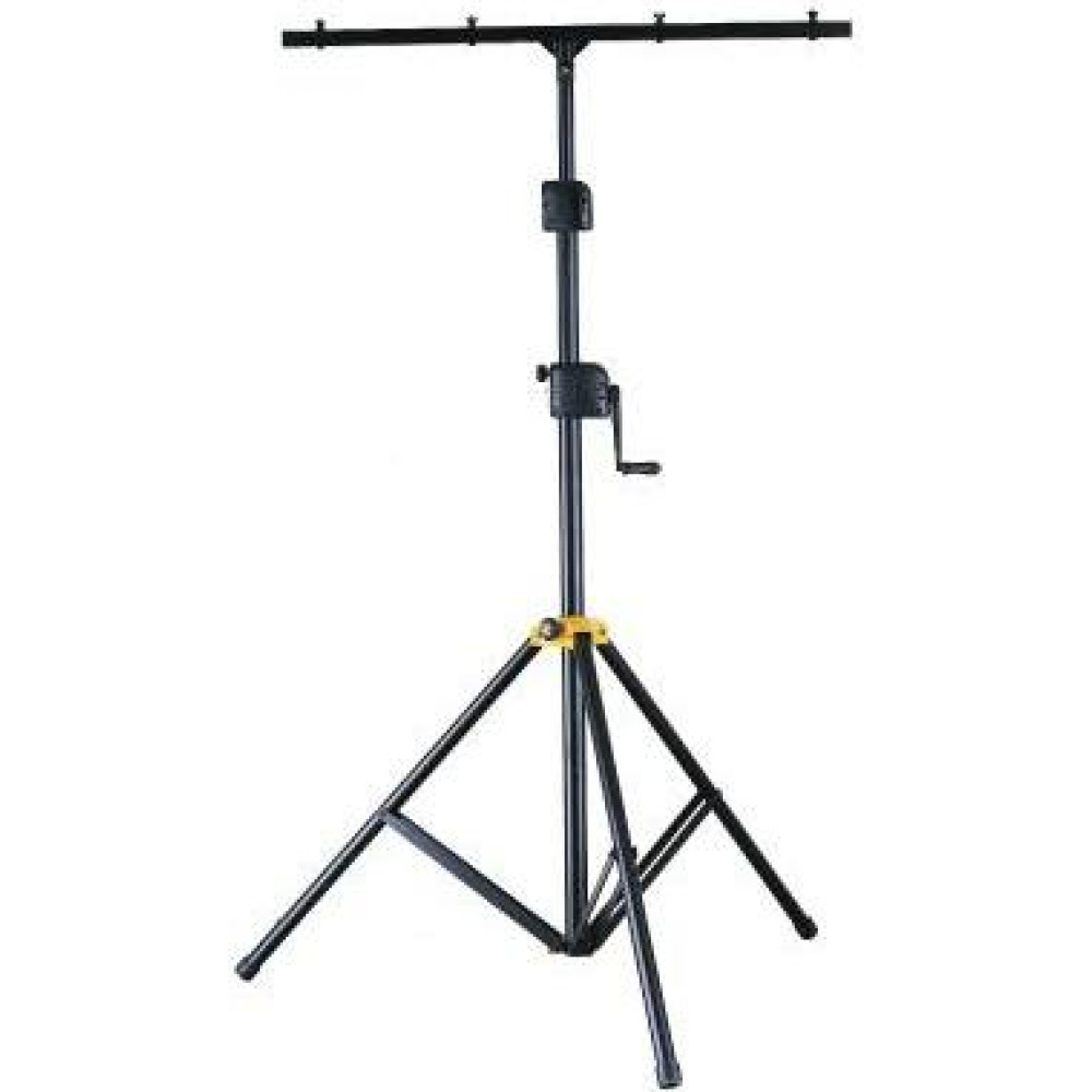 El Soporte de Iluminación LS-700B de Hercules cuenta con el Sistema de Equipamiento Quik-N-EZ, una barra en T cuadrada con un clip para un fácil montaje, y una construcción de pata de trípode de doble soporte.