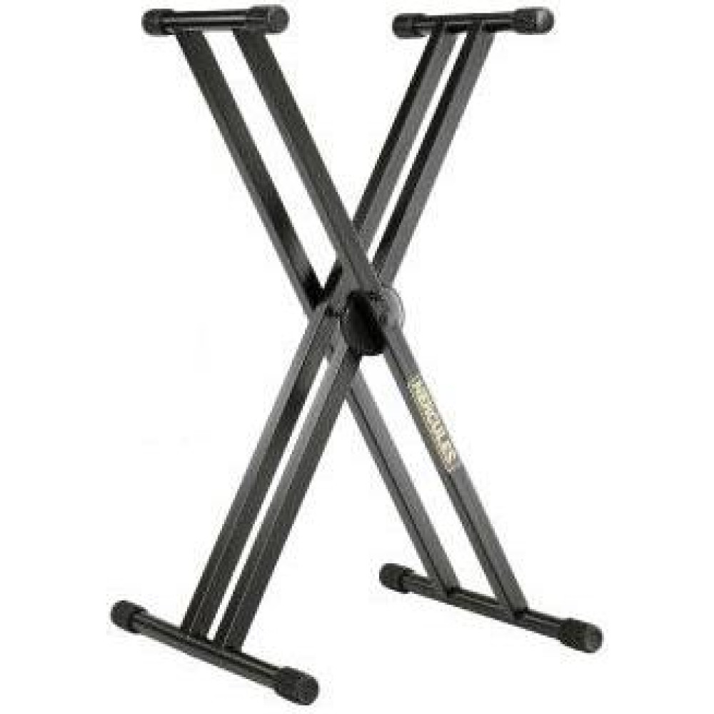 Soporte de teclado Hercules KS-120B en forma de tijera de doble perfil reforzado.