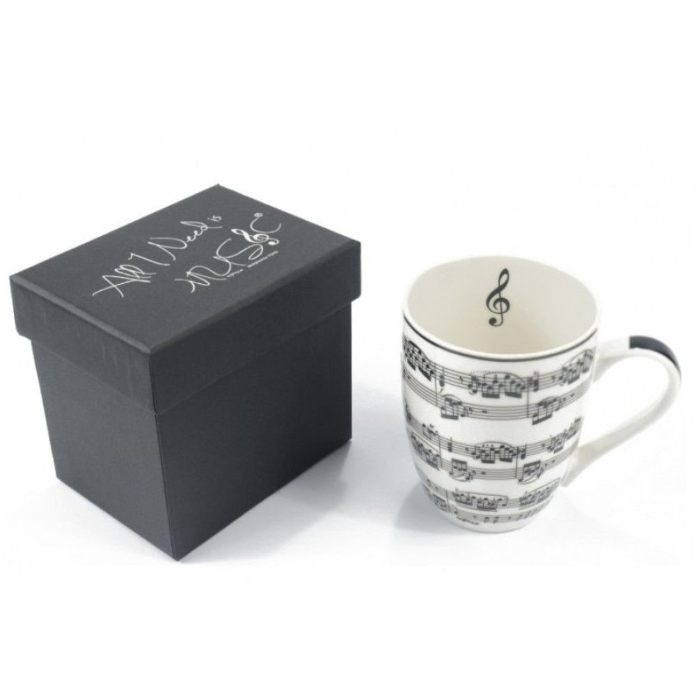 La taza de Agifty está fabricada con porcelana nueva, lo que le otorga una apariencia y sensación clásica. En su interior, presenta el símbolo de la clave de sol, ampliamente reconocido en todo el mundo. Además, se entrega en una caja de regalo elegante, con la frase «Todo lo que necesito es música» en la parte superior.