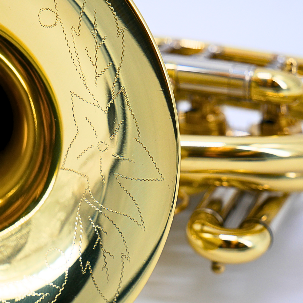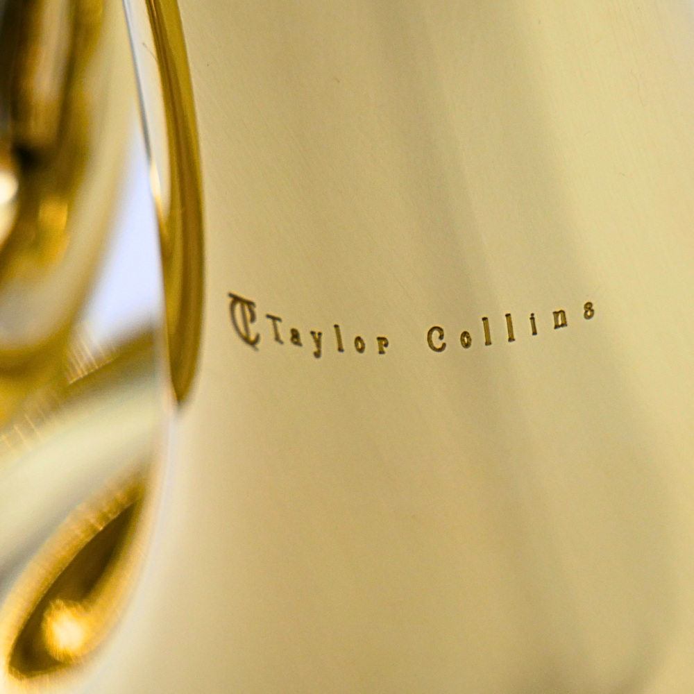 Está equipada con una tubería de 12 mm, campana de 166,5 mm y 3 cilindros que permiten una ejecución fluida y cómoda. El instrumento luce un elegante acabado grabado con motivos naturales y el logotipo Taylor Collins marcado en el cuerpo. Incluye una funda reforzada con el logo bordado y un kit de mantenimiento con guantes, paño y aceite para los cilindros, asegurando su conservación diaria en óptimas condiciones.