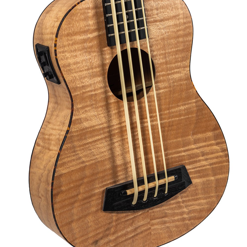 Elaborado con madera de Okume flameado, este ukelele bajo cuenta con cejuelas de acero plástico, puente y diapasón de palosanto, y clavijeros BS Special-cast. Todo en un precioso acabado satinado natural.