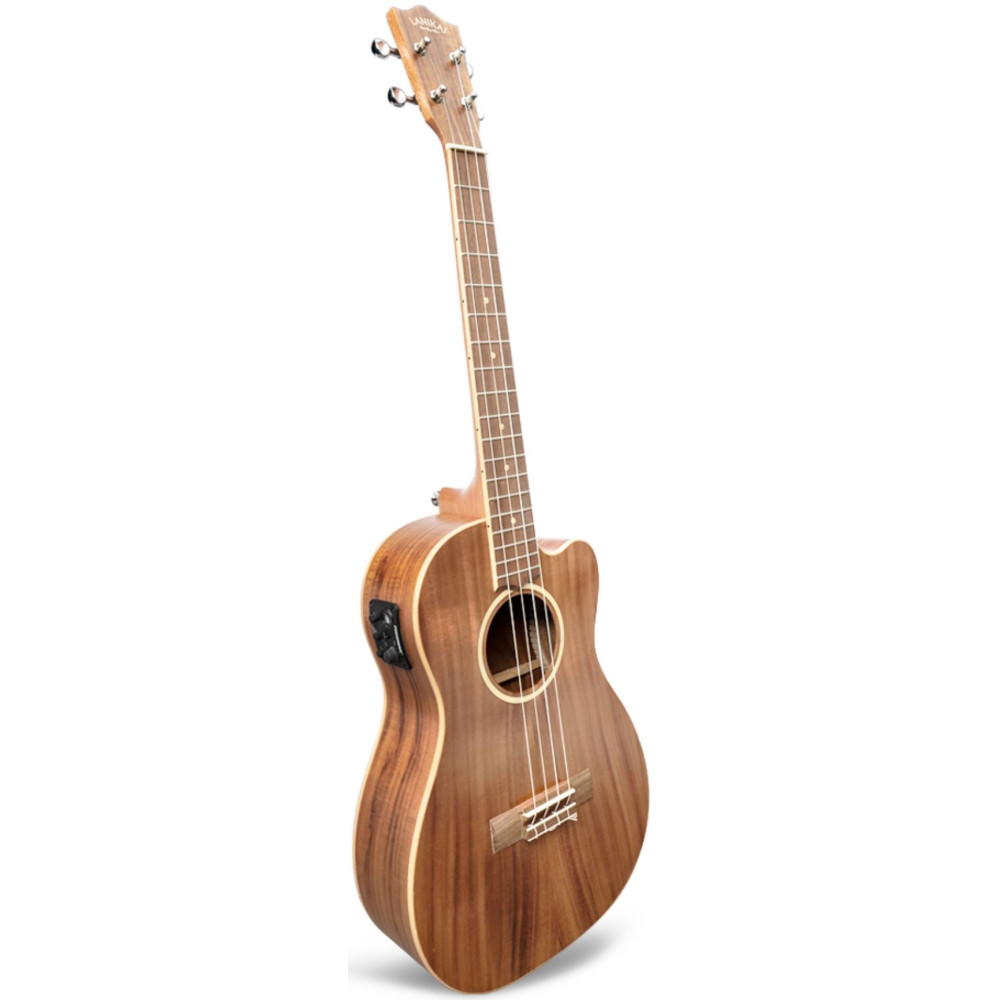 El ukulele Lanikai ACST-CEB es un ukulele de tamaño barítono con la tapa sólida de acacia y aros y fondo laminados.