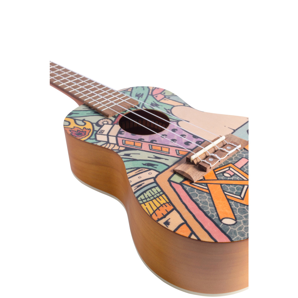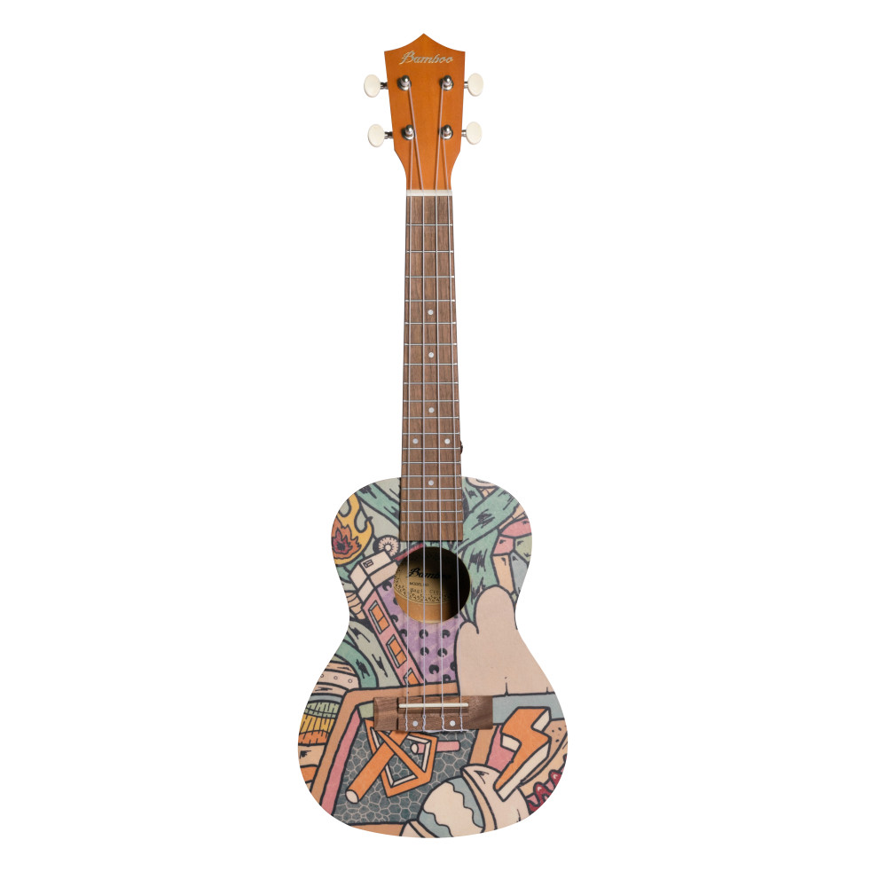 Ukelele Concert 23″ marca Bamboo modelo Magic City, acabado en mate, color madera más diseño