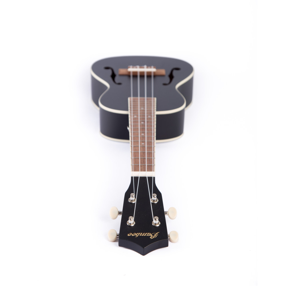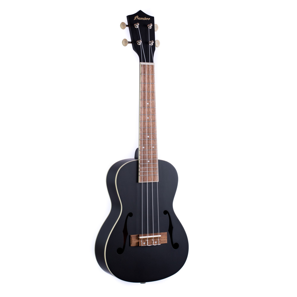 Ukelele Concert marca Bamboo modelo Violin color negro, acabado Mahogany