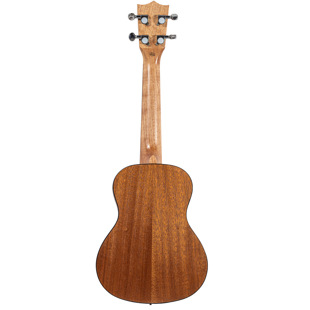 Con tapa elaborada en madera de abeto sólido, este ukulele concert cuenta con fondos y laterales de sapelly, mástil de Okume, cejuelas de hueso, puente y diapasón de nogal, y clavijeros die-cast cromados.
