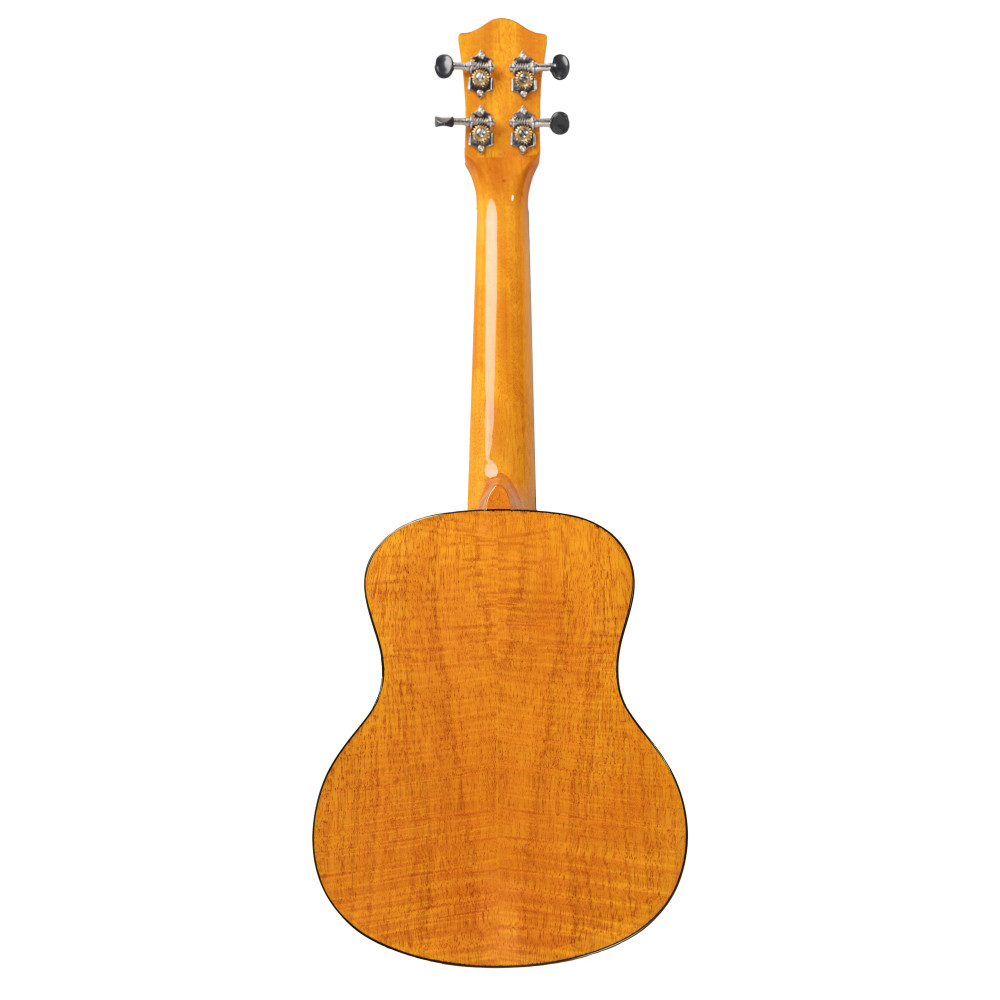 El mástil de okume mejora el sustain, mientras que las cejuelas de hueso y el puente y diapasón de nogal garantizan una buena transmisión de la vibración y un tacto cómodo. Este modelo concert equilibra portabilidad y potencia sonora, siendo ideal tanto para principiantes como para músicos avanzados. Incluye funda para su protección.