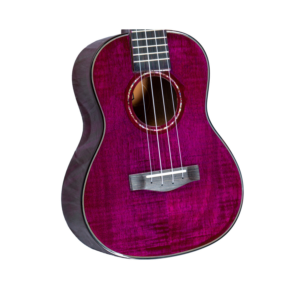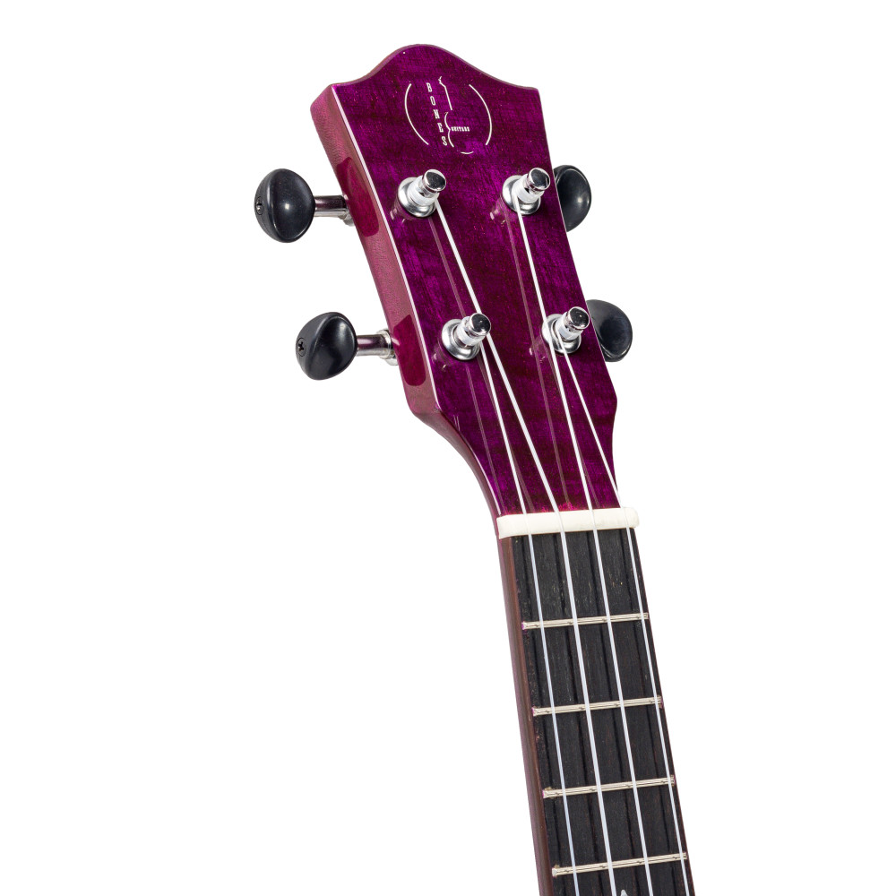 El ukelele concert Bones SP630C-PU destaca por su vibrante acabado púrpura y una construcción que favorece un sonido brillante y con gran proyección. Su tapa y cuerpo de arce generan un tono definido, ideal para acompañamientos rítmicos y líneas melódicas claras, mientras que su tamaño concert equilibra comodidad y volumen.
