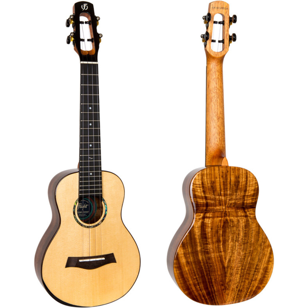Con tapa de pícea sólida y aros y tapa trasera de acacia sólida, el ukelele concert Voyager de Flight es una pieza única. Tiene un cómodo borde (el reposabrazos Flight) que permite tocar el ukelele cómodamente. Además, cuenta con una bonita roseta de concha marina y un clavijero con una forma única.