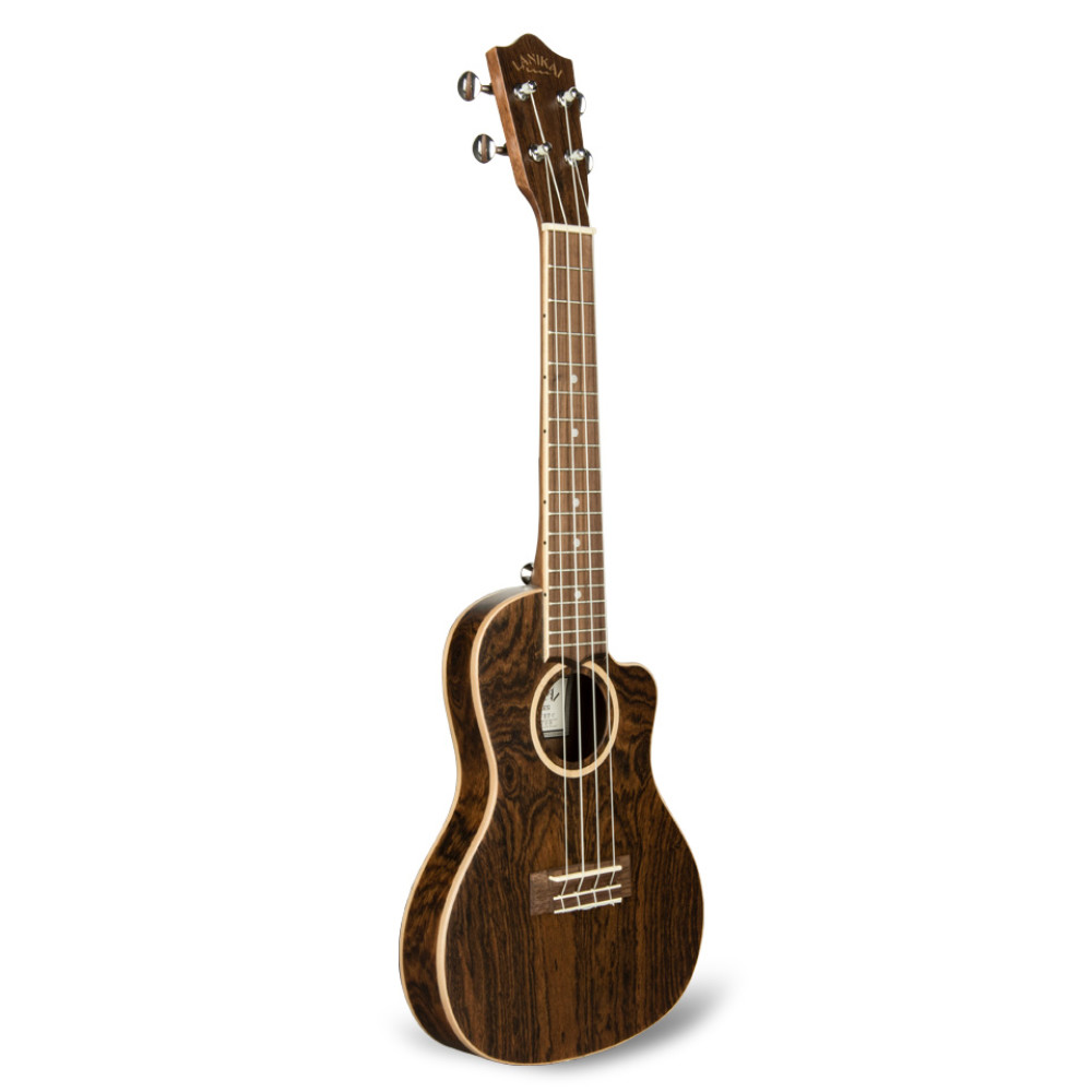 El Lanikai FB-CETC Figured bocote es un ukulele concert con el cuerpo y la tapa laminada de Bocote, clavijas abiertas cromadas y cejuelas Nubone XB.