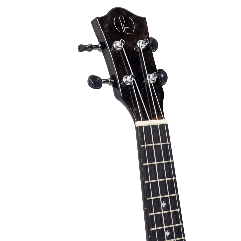El Bones SP620SBK es un ukulele tenor de color negro con tapa y cuerpo de arce que lo hacen estéticamente muy atractivo y le dan al instrumento un sonido brillante y con mucha proyección. para sumarle sustain, el ukulele tiene un mástil de Okume con cejuelas de hueso OX Bones y un puente y diapasón de nogal. funda incluida.