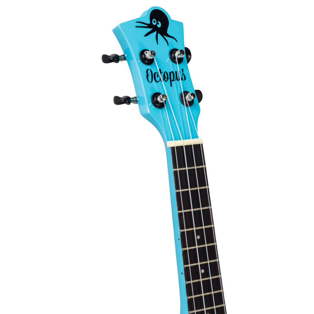 Ukelele de madera de nato ( tipo caoba ) de tamaño soprano con clavijero de máxima calidad y precisión. El Puente y el diapasón son de palisandro sólido. Los ukeleles octopus vienen equipados con cuerdas de nylon y van con funda incluida .