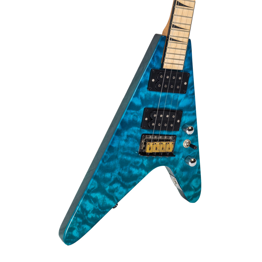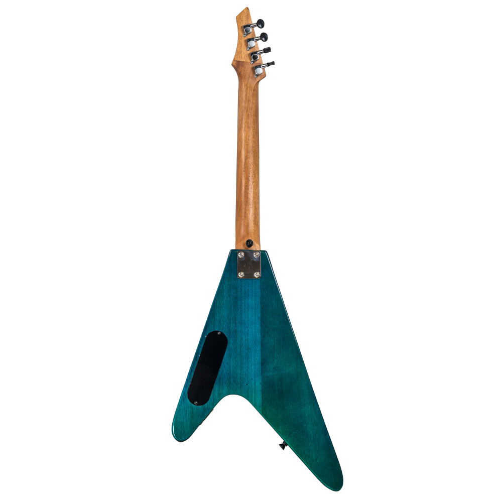El ukelele tenor eléctrico Bones BF-2TB ofrece una estética atrevida y un sonido potente gracias a su icónica forma Flying V y su construcción con maderas de alta calidad. Su cuerpo de arce y tapa de fresno proporcionan un tono brillante con excelente proyección, ideal para músicos que buscan destacar tanto visual como sonoramente.