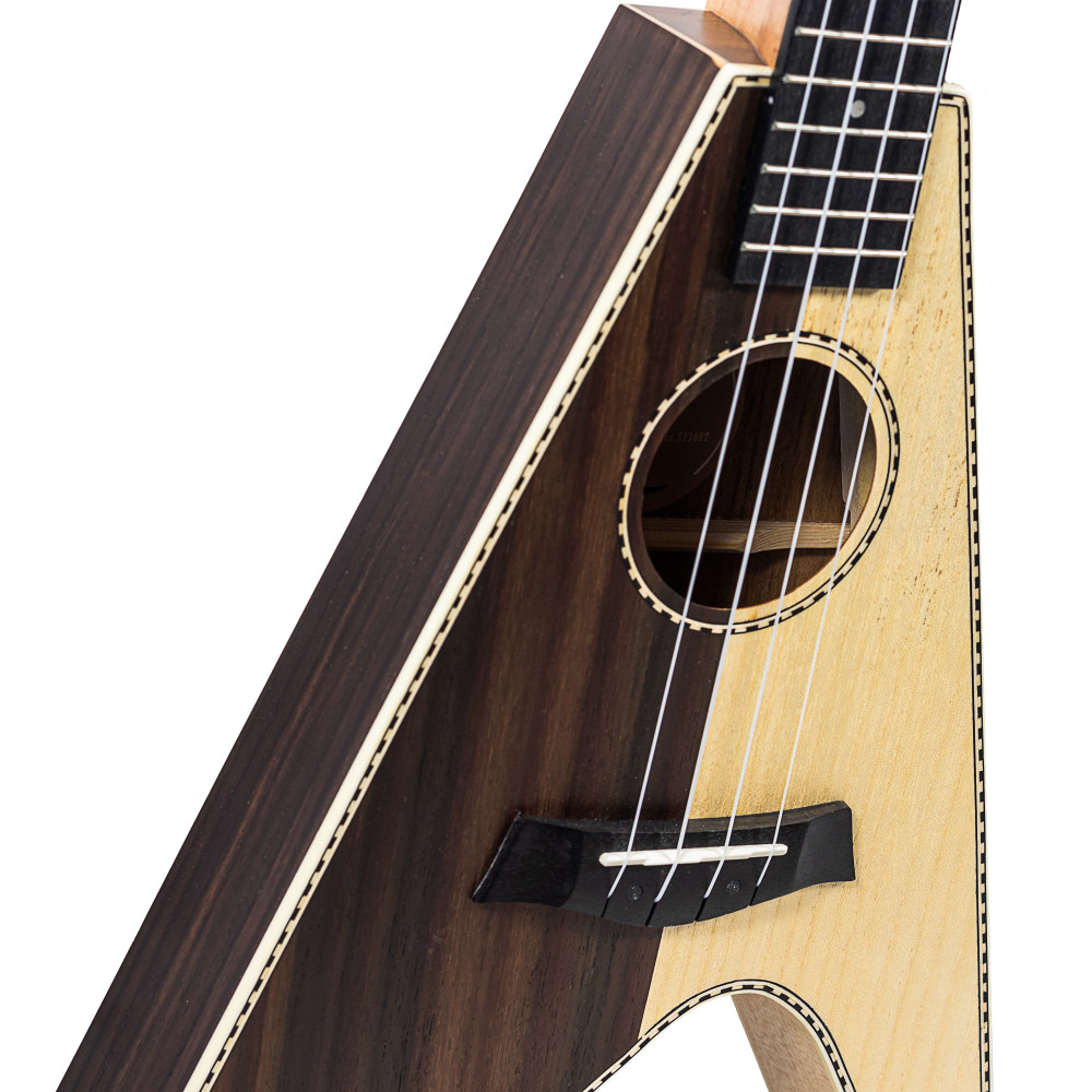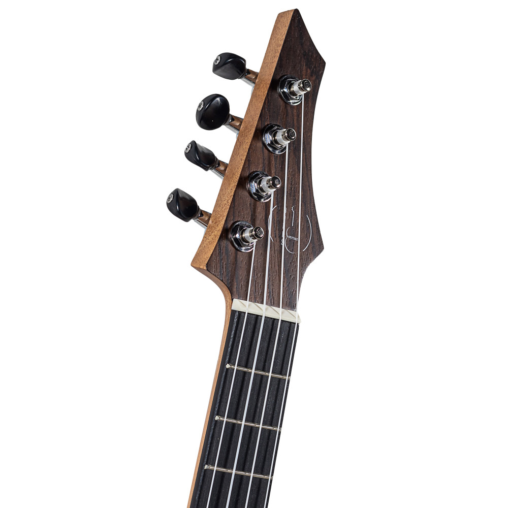 Elaborado con madera de ébano y arce, este ukelele tenor cuenta con un sorprendente diseño estilo flying V con roseta de madera. Todo en con un acabado natural satinado. Además, el SP380T cuenta con mástil de Okume, cejuelas de hueso, puente y diapasón de palosanto, y clavijeros die-cast cromados con botones negros.