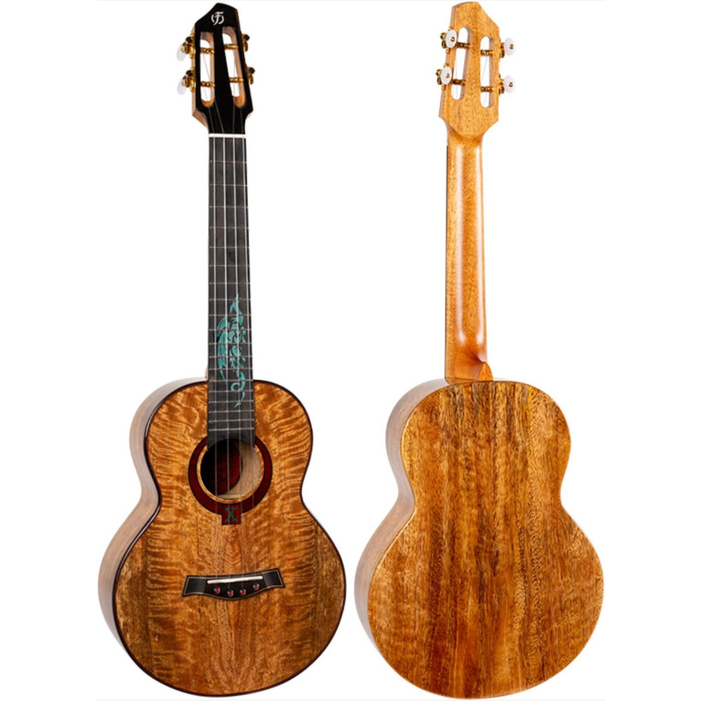 El Flight A10 MM Mango Dragon Tenor Ukulele le dejará sin aliento. Fabricado con mango de primera calidad, la pieza central del instrumento es una incrustación de dragón de color turquesa en el diapasón. El dragón es el símbolo de Liubliana, Eslovenia, el hogar de Flight Ukulele. El instrumento también incluye una roseta de madera roja con una incrustación de números romanos «X» para el 10º aniversario. Además de estas características, el instrumento también incluye un clavijero especial del 10º aniversario, una tapa negra con una delgada línea de ribeteado rojo, un puente con pivotes, cuerdas brasileñas de fluorocarbono y una funda acolchada de lujo actualizada. En pocas palabras, ¡este ukelele es una maravilla!