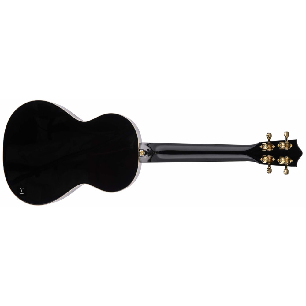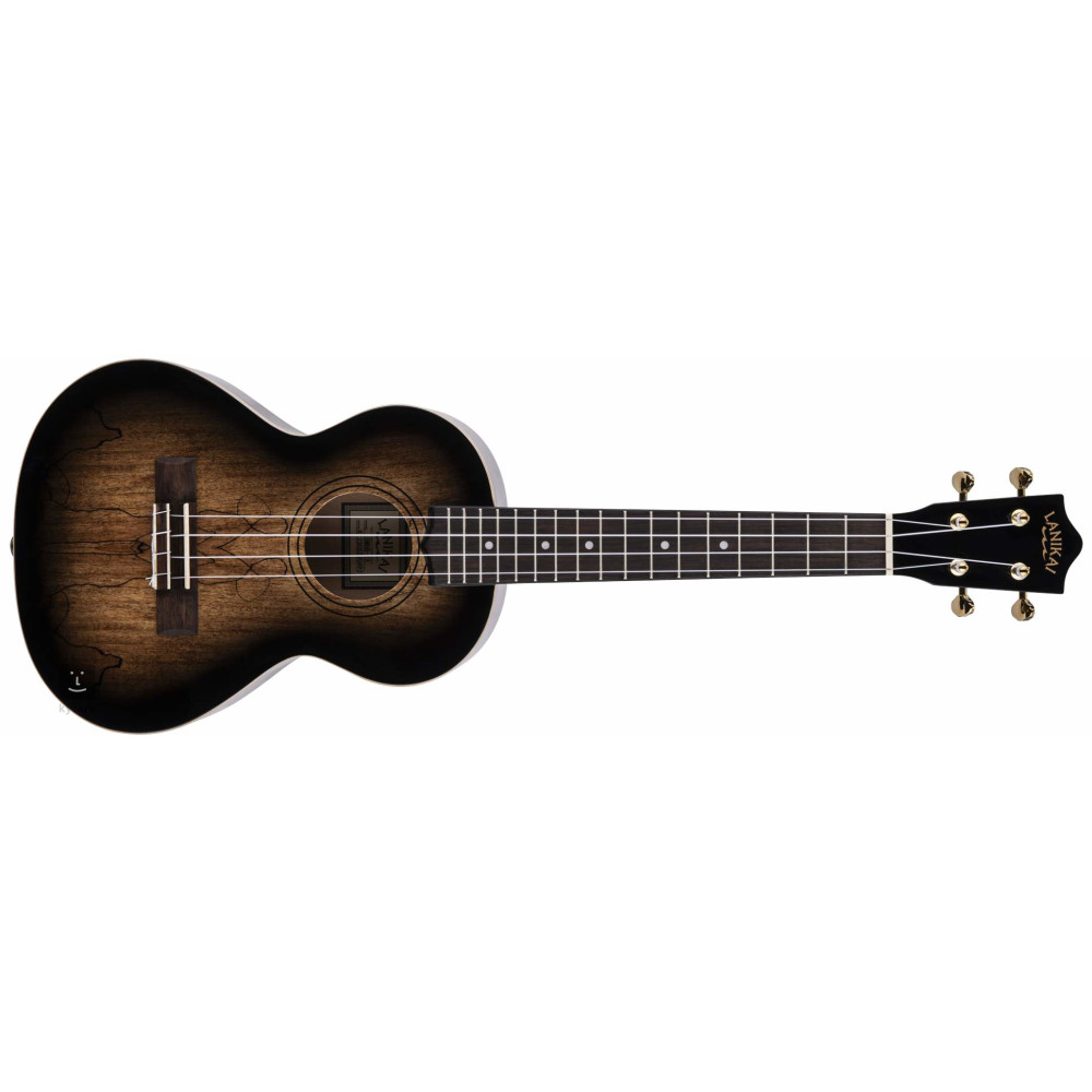 – Talla: Tenor – Escala: 432 mm – Trastes: 17- Tapa: Arce Spalted Burst- Fondo y aros: Tilo- Mástil: Okoume Okoume – Cutaway: No- Diapasón: Laurel – Ancho de la cejuela: 37.4 mm- Afinadores: Grover Gold, open back- 2 botones de correa cromados – Cejuela y selleta: Graph Tech NuBone XB- Cuerdas: D’Addario EJ88T- Binding: Crema – Roseta: Negra, doble línea – Acabado: Brillante- con bolsa acolchada de 20 mm